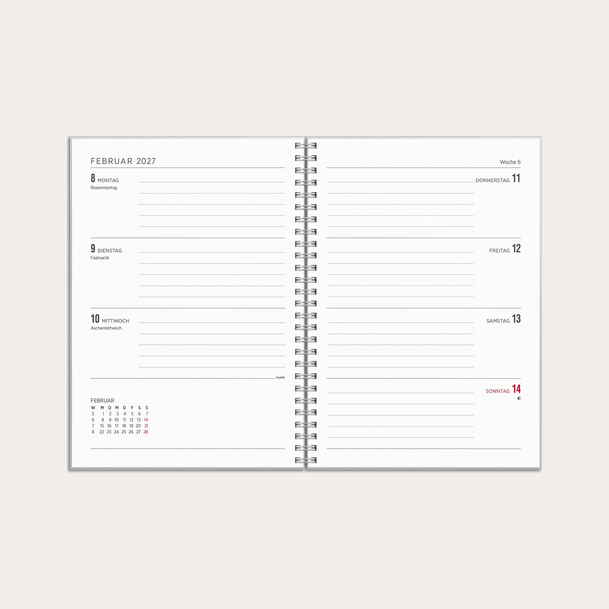 | Layout-aufschlüsselung | Woche/2-Seiten |