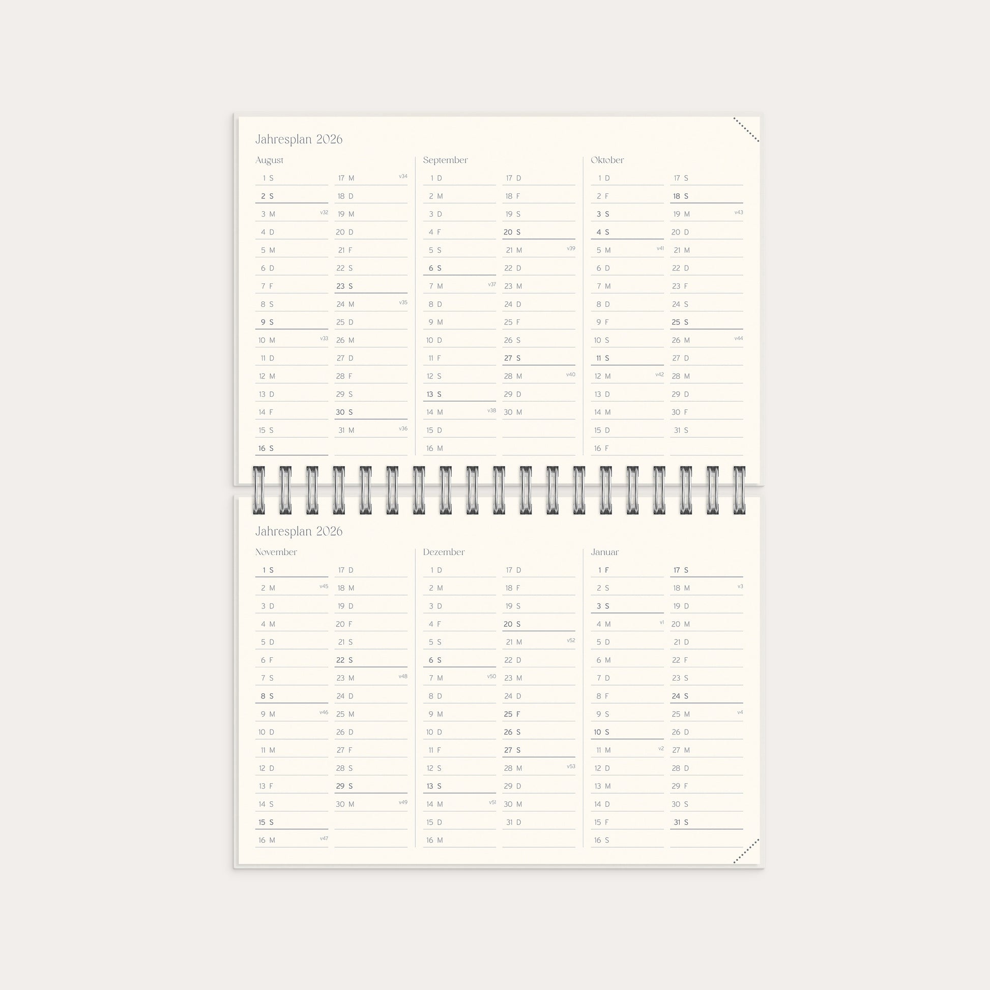 | Layout-aufschlĂŒsselung | Woche/2-Seiten |