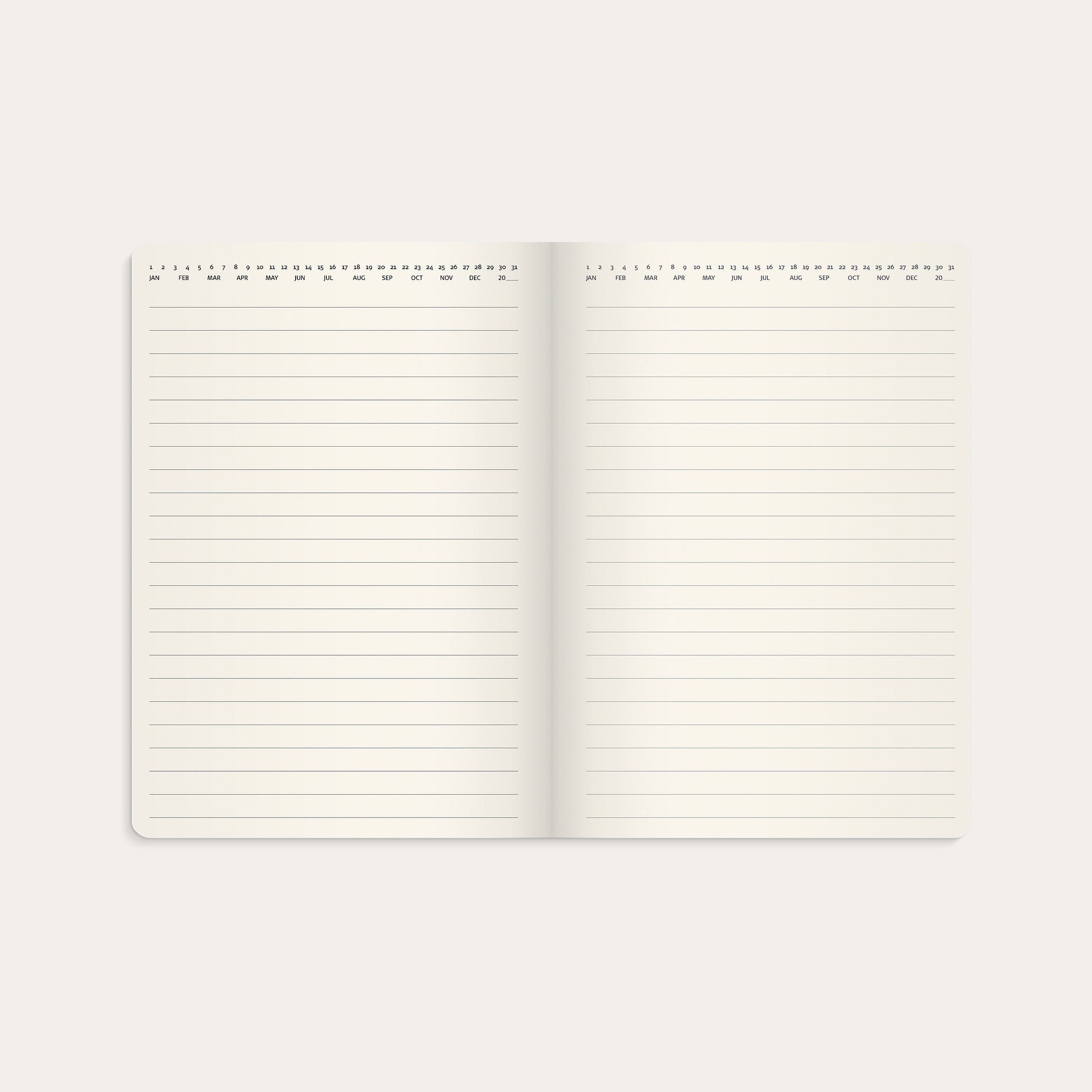 Agency Forma Deluxe ist ein gebundener Kalender mit cremefarbenem Papier, der dank seiner einzigartigen Bindungstechnik flach auf der Tischoberfläche liegt, wenn du schreibst. Der Kalender bietet eine Woche pro Seite, eine vertikale Layout mit Stundenaufteilung von 06-18 und eine Notizfläche am unteren Rand jeder Seite für weiterführende Reflexionen. Zusätzlich enthält der Agency Forma Deluxe eine übersichtliche Jahresplanung sowie weitere Seiten für Notizen. Das braunfarbene mockakunstleder verleiht dem Kalender eine elegante Ausstrahlung mit britischer Raffinesse.