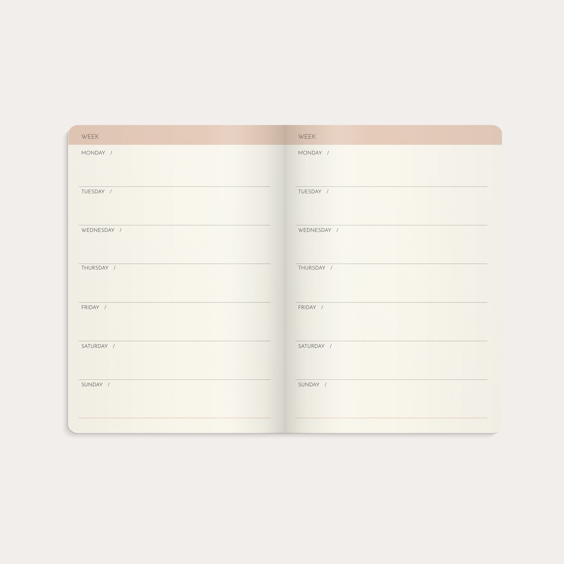 Exclusive undated planner with a brown faux leather cover. You fill in the dates and week numbers yourself, making it easy to decide when your year begins. Week Planner Deluxe features 176 cream-coloured pages and practical details such as an elastic band, ribbon marker, and inner pocket. The content is in English. This planner is a natural companion for notes, ideas, and everyday planning.