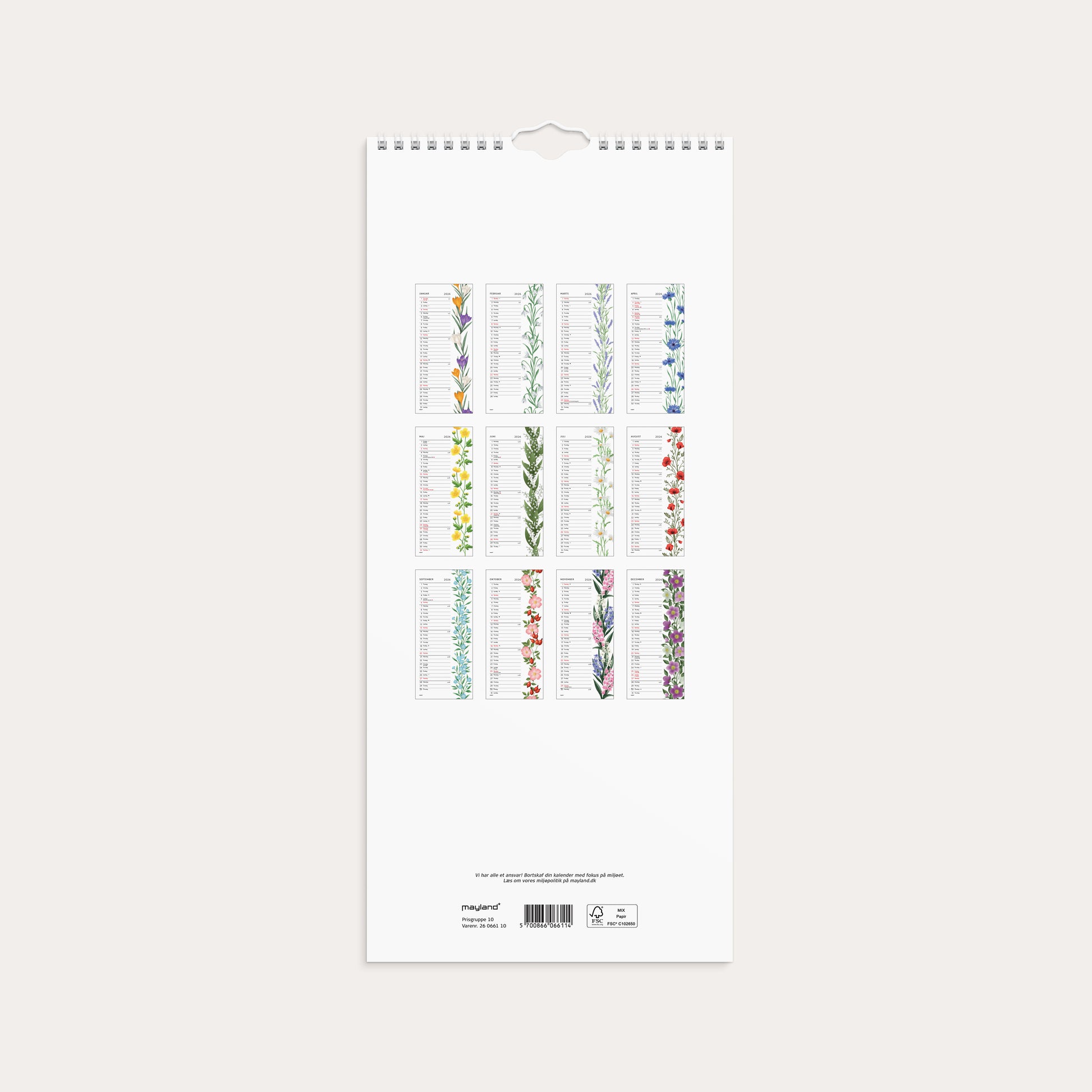Vægkalender Blomster 2026