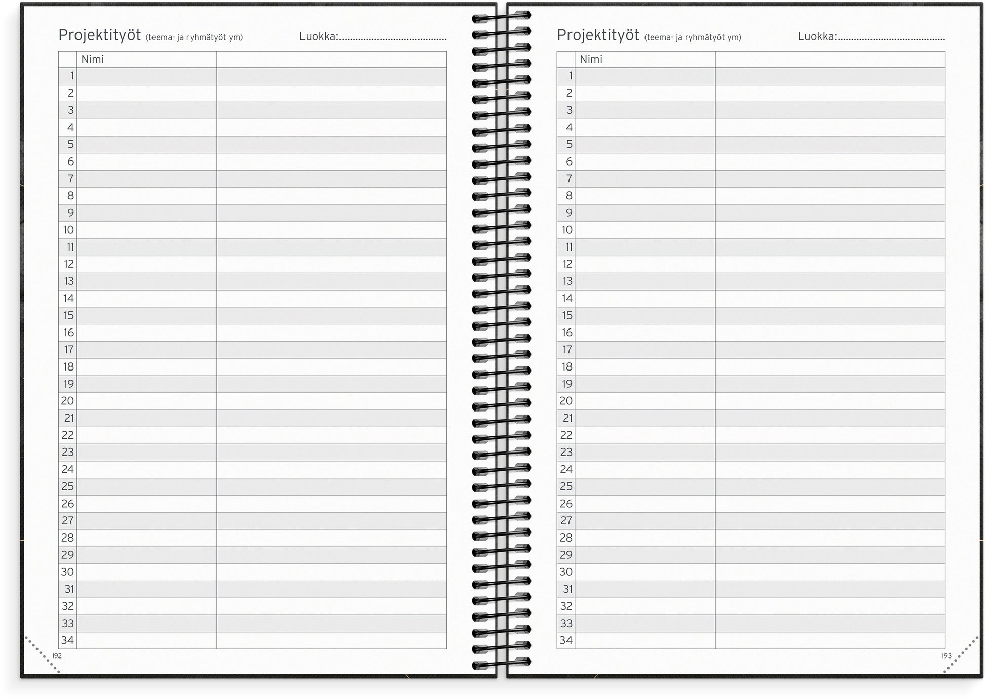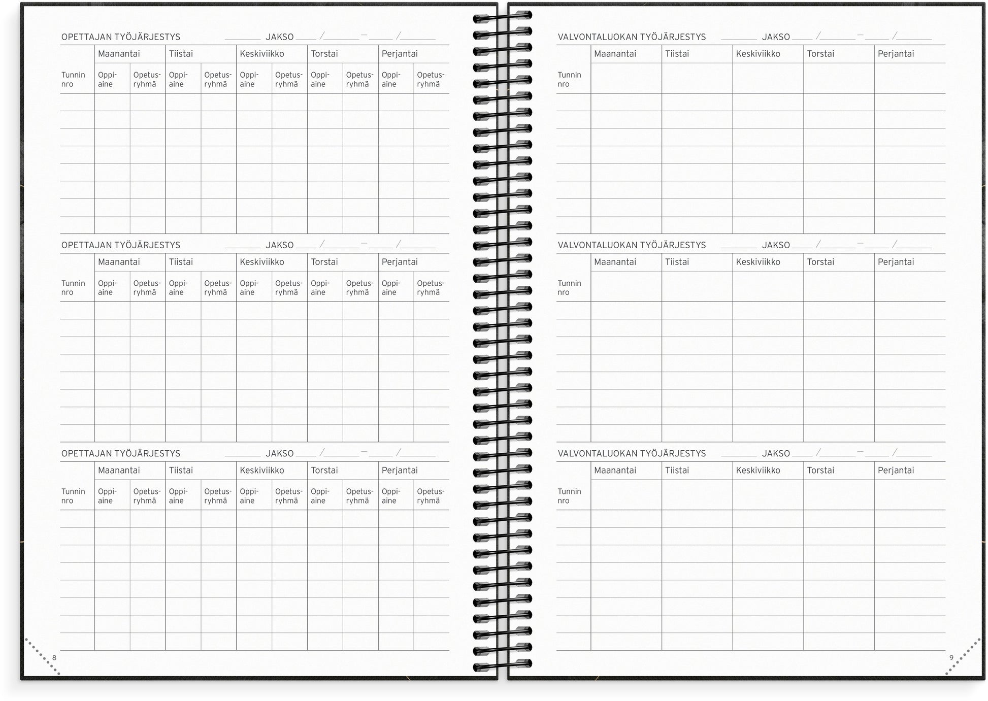 A teacher's calendar where you can choose yourself whether you want to enter class lists, schedules, test results, etc. There are many blank, dotted and checkered pages where you can use your own creativity.