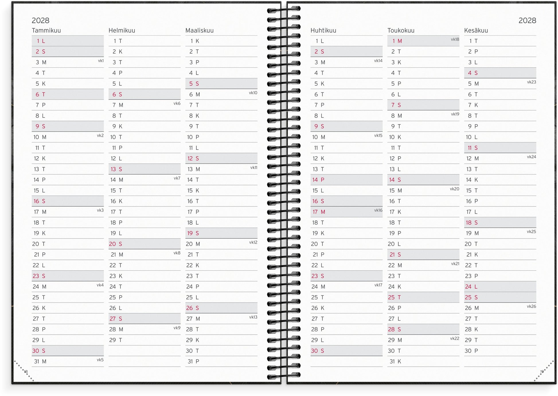 | Layout breakdown | Week/Spread |