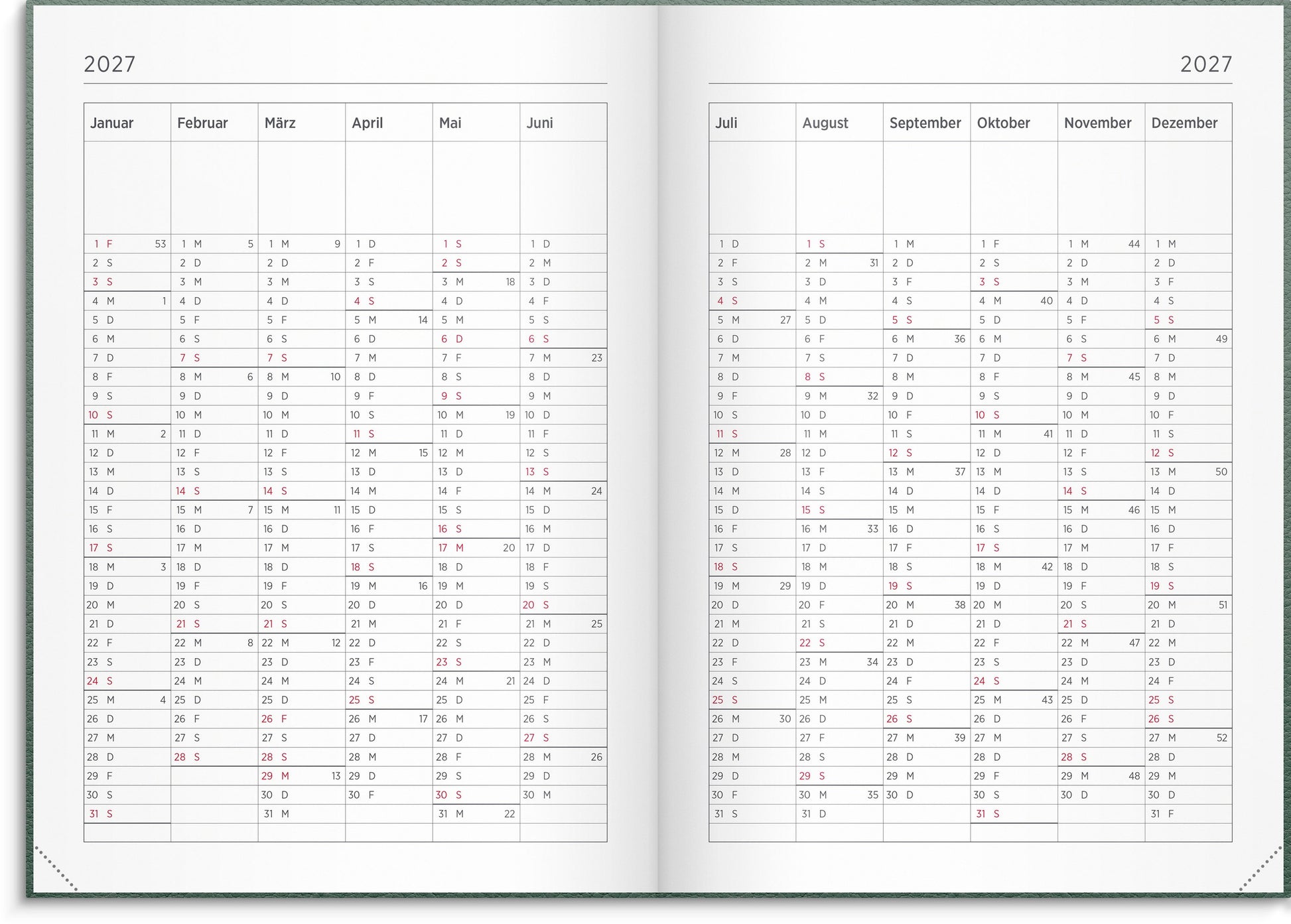 | Layout breakdown | Week/Spread |