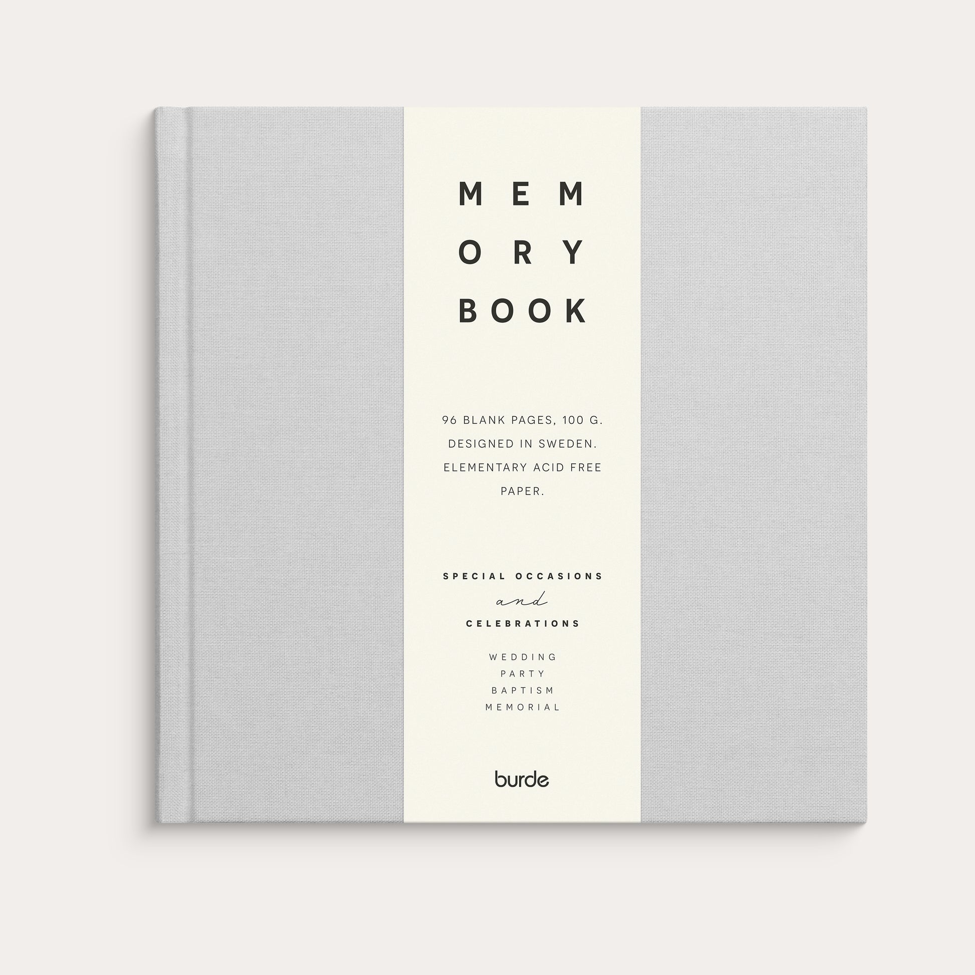 Memory book – for life's valuable moments. A beautiful and stylish memory book in gray linen textile, created in Sweden. Perfect for preserving text, photos, and sketches from travels, celebrations, and everyday precious moments. With 96 cream-colored unlined pages on high-quality paper, it offers full creative freedom – a personal keepsake to return to. A lovely and appreciated gift for baptisms, weddings, or birthdays.