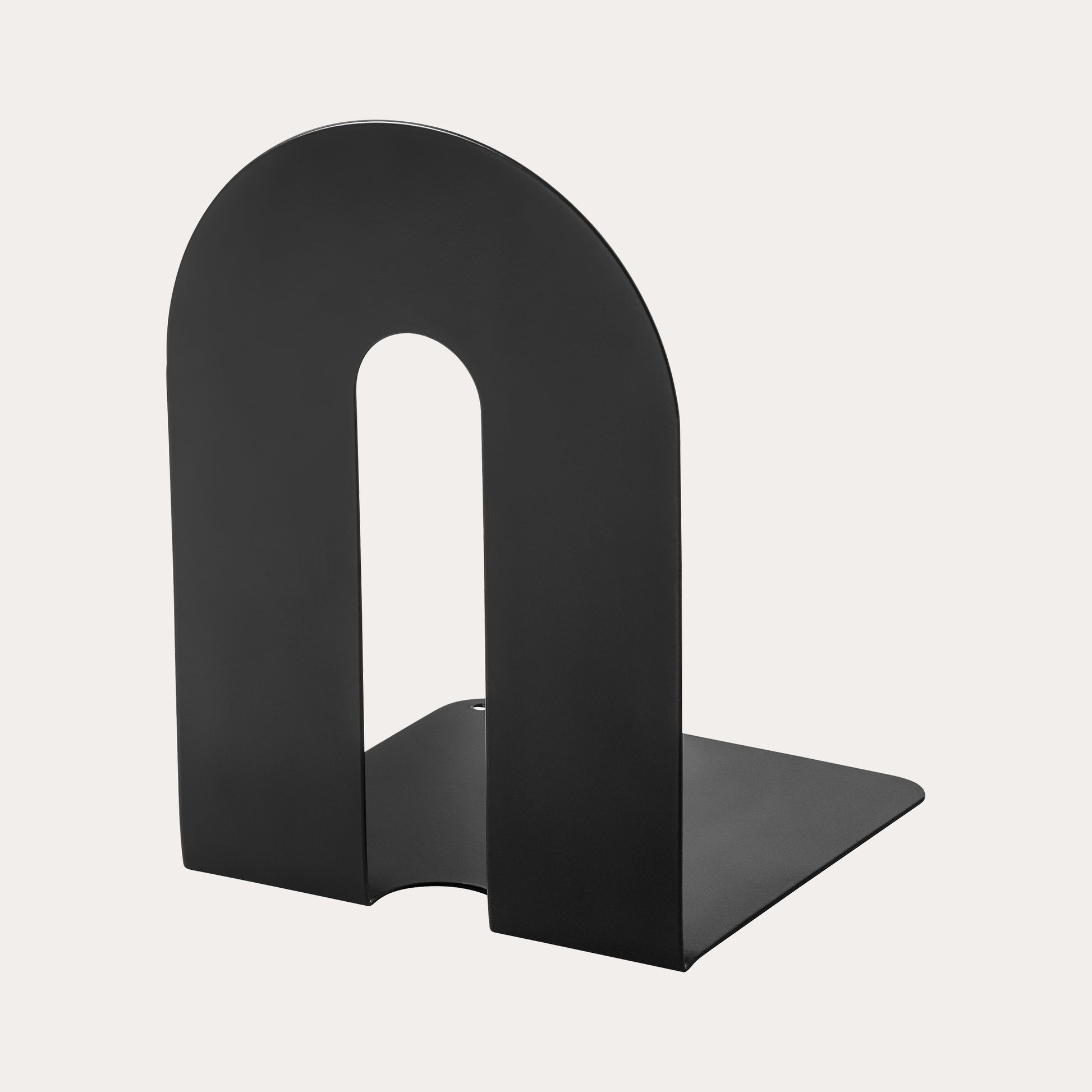 Elegant bookend in powder-coated metal with a matte black finish — a stylish and functional detail for the bookshelf or desk. 2-pack. Size: 150x100x100 mm.