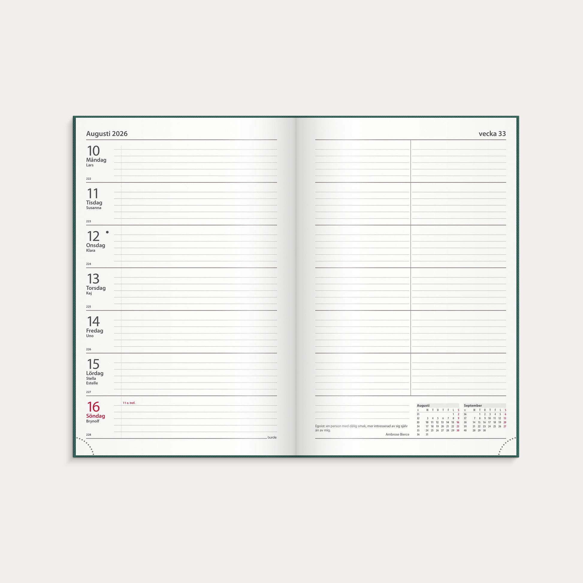 Kontorskalender 2026 grön