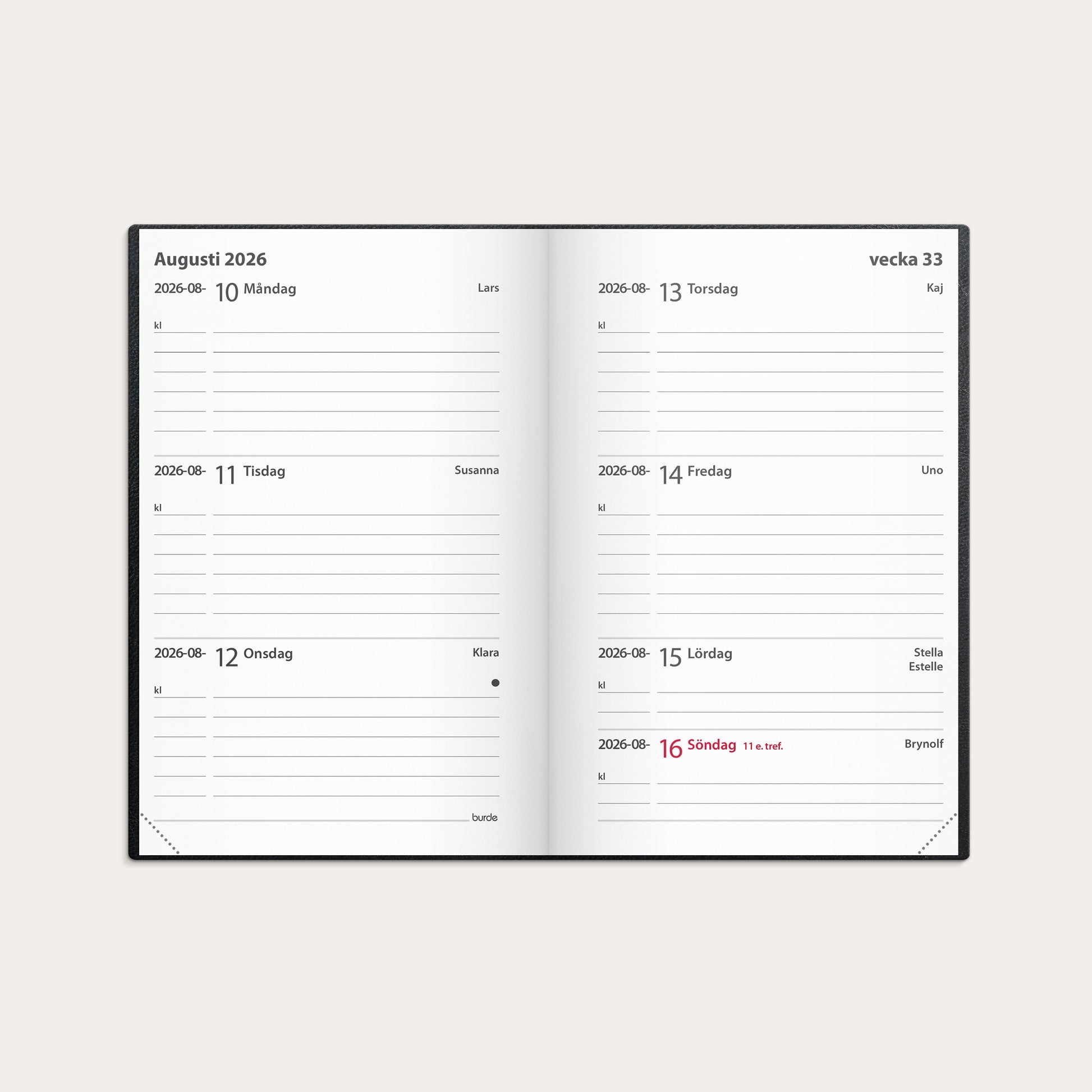 Kalender 2026 Leader svart konstläder inb