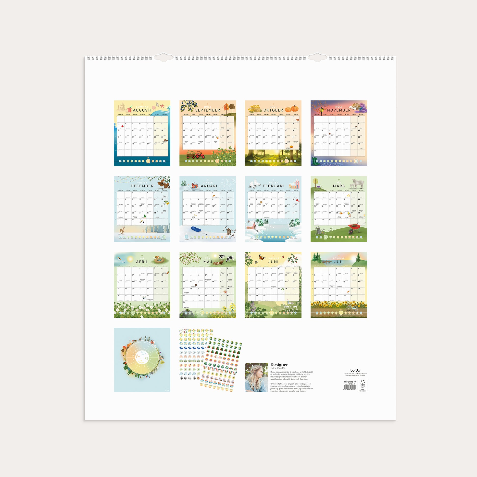 Burdes klassrumskalender är en väggkalender i stort format som är framtagen för att hänga i klassrummet. Varje sida är fylld av färg och säsongsrelaterade illustrationer, för att väcka nyfikenhet och förståelse kring årstiderna.