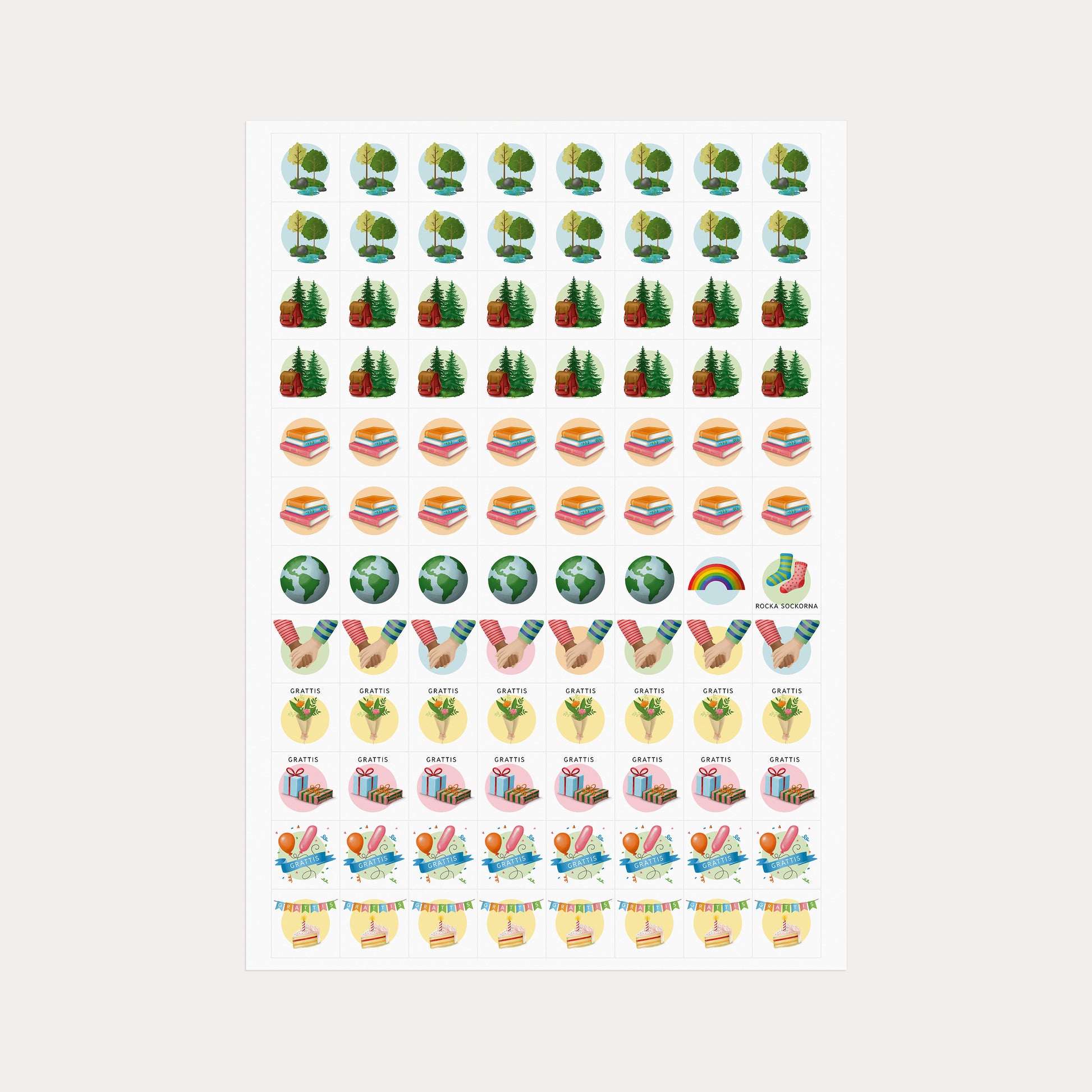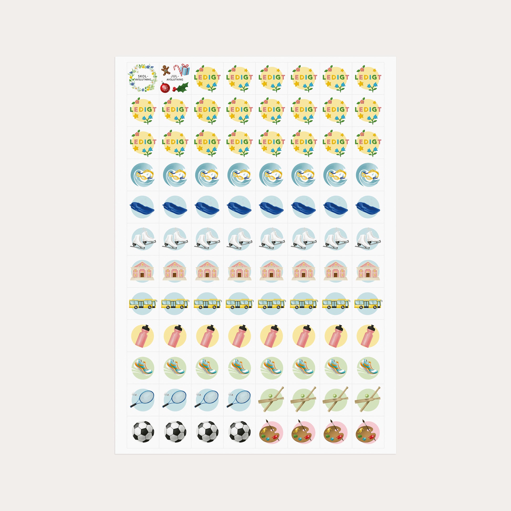 Även högtider och roliga temadagar finns illustrerade i kalendern för att skapa ytterligare engagemang och diskussion i klassrummet. Utöver detta medföljer även 2 stora stickersark med händelser att klistra in, vid exempelvis födelsedagar, utflykter eller liknande.