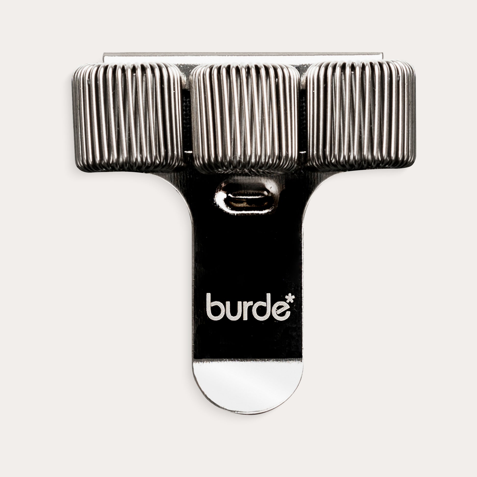 Pen holder in silver-coloured metal with clip and space for three pens. Size: 40 x 40 mm – practical to attach to a notebook or diary.