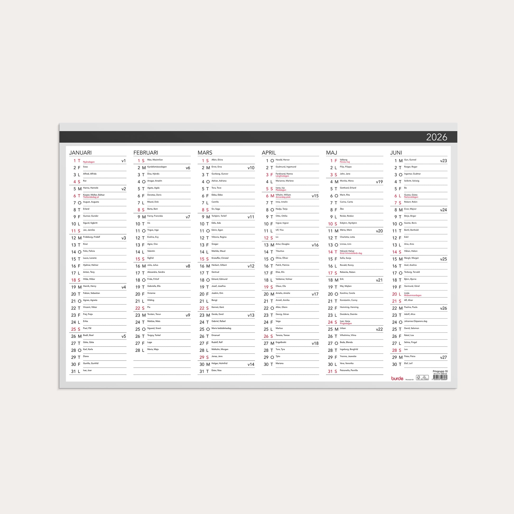 Väggblad 2026 Elegant 600x400 mm