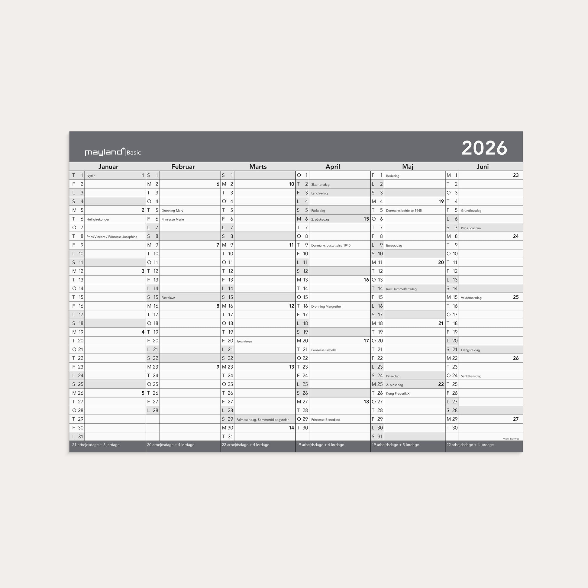 Basic kontorkalender m/whiteboard-funktion A2 2026