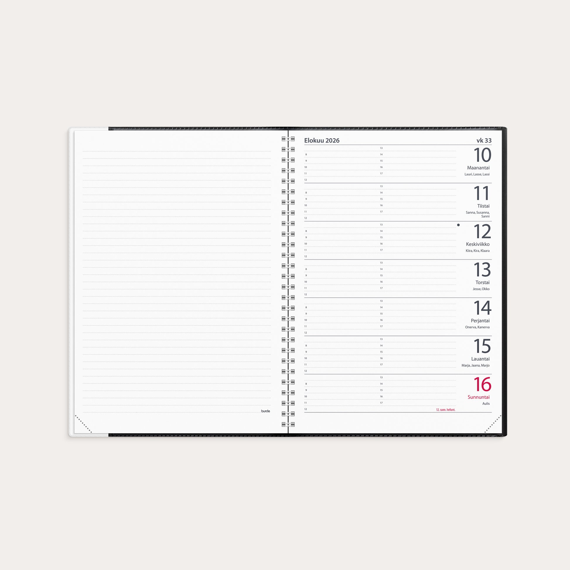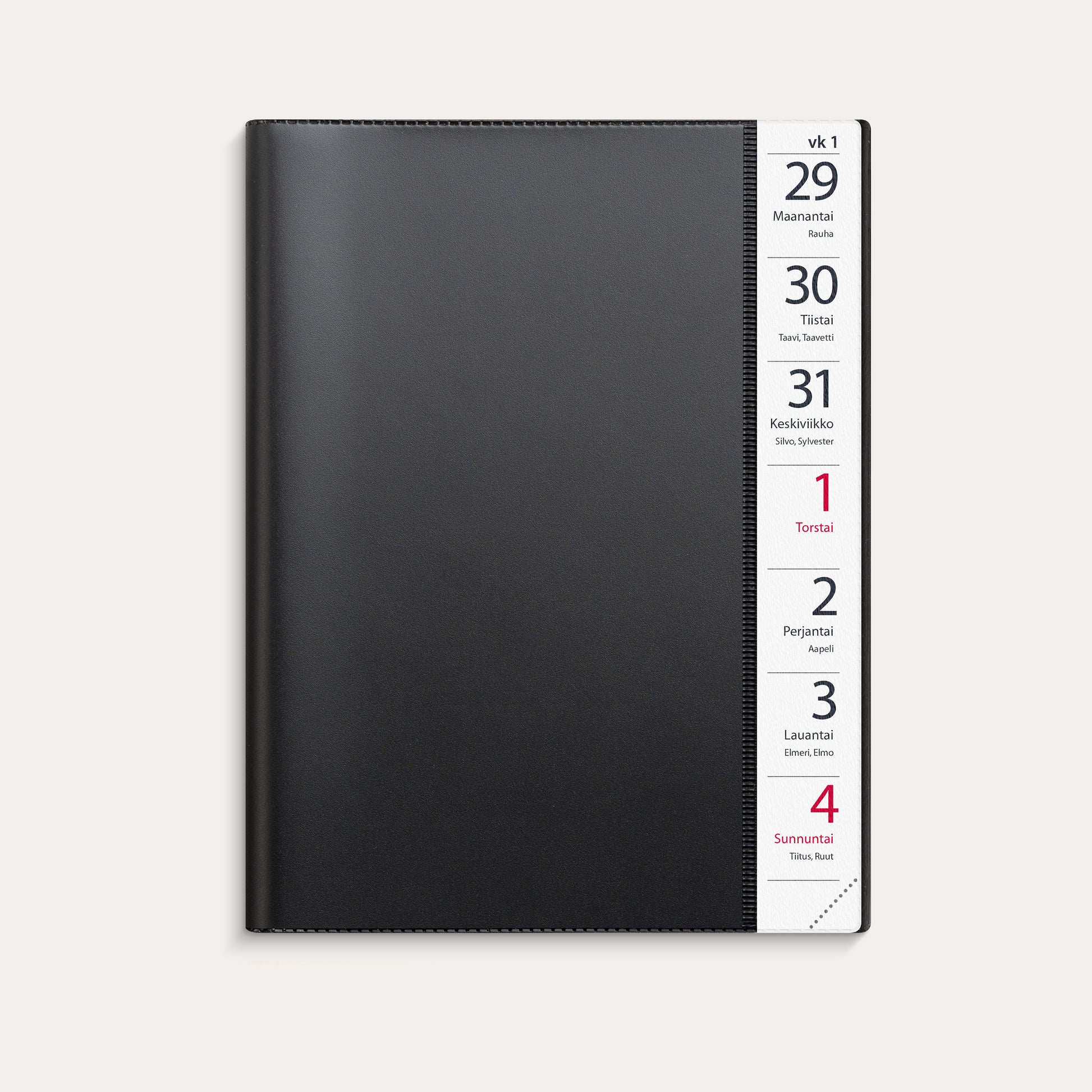 Suuri viikkokalenteri A5 2026 musta muovi