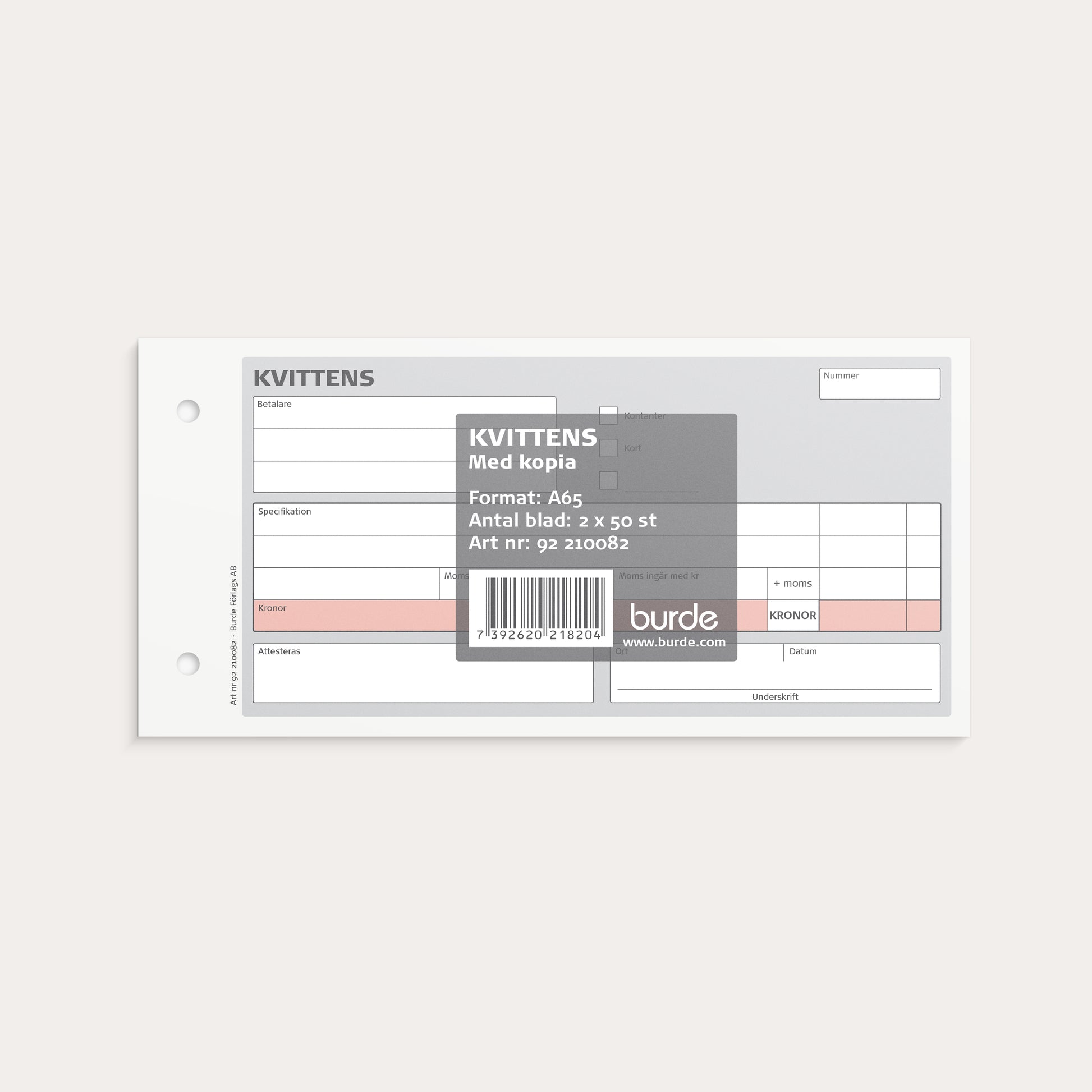 Kvittens A65 med 1 kopia 2 x 50 blad