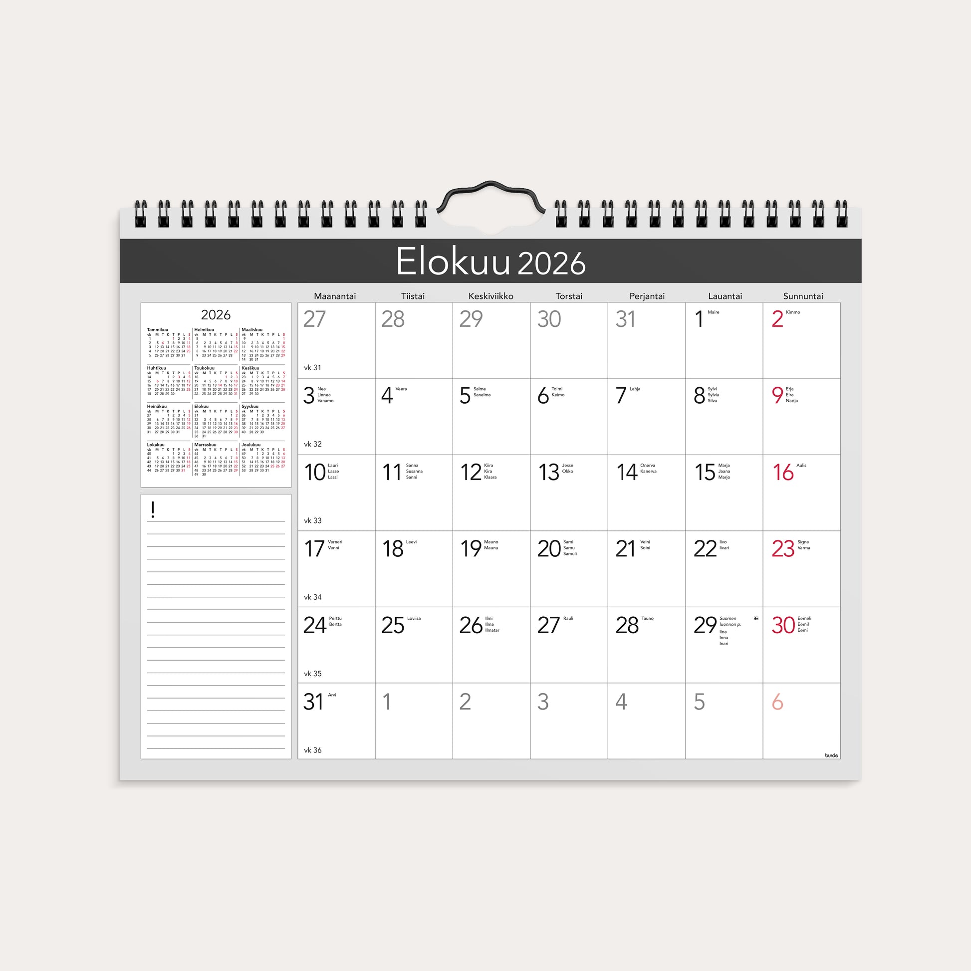 Kuukausikalenteri Elegant 2026