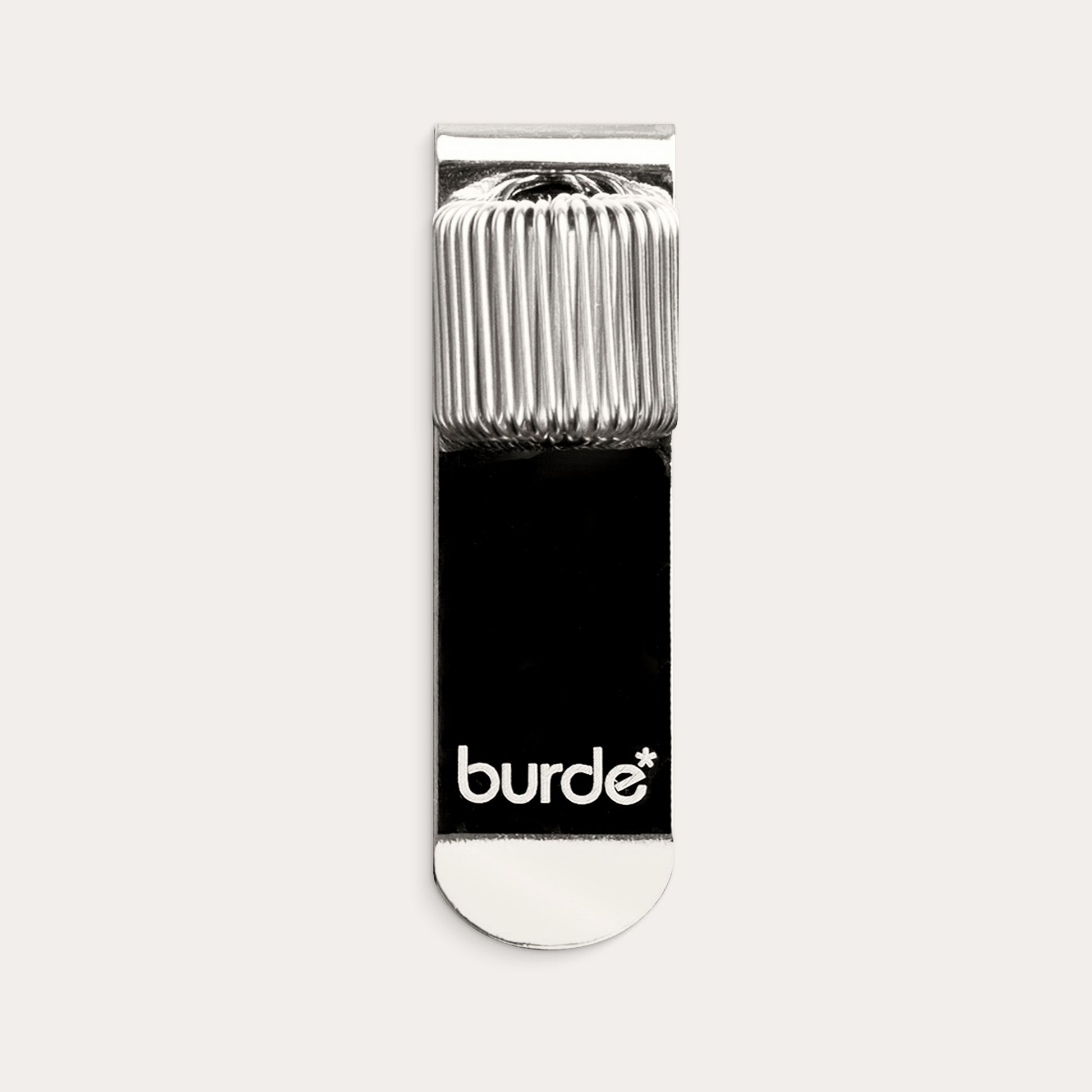 Kynäpidike hopeanvärisestä metallista, jossa klipsi yhdelle kynälle. Koko 12 × 40 mm – kätevä kiinnittää muistikirjaan tai kalenteriin.