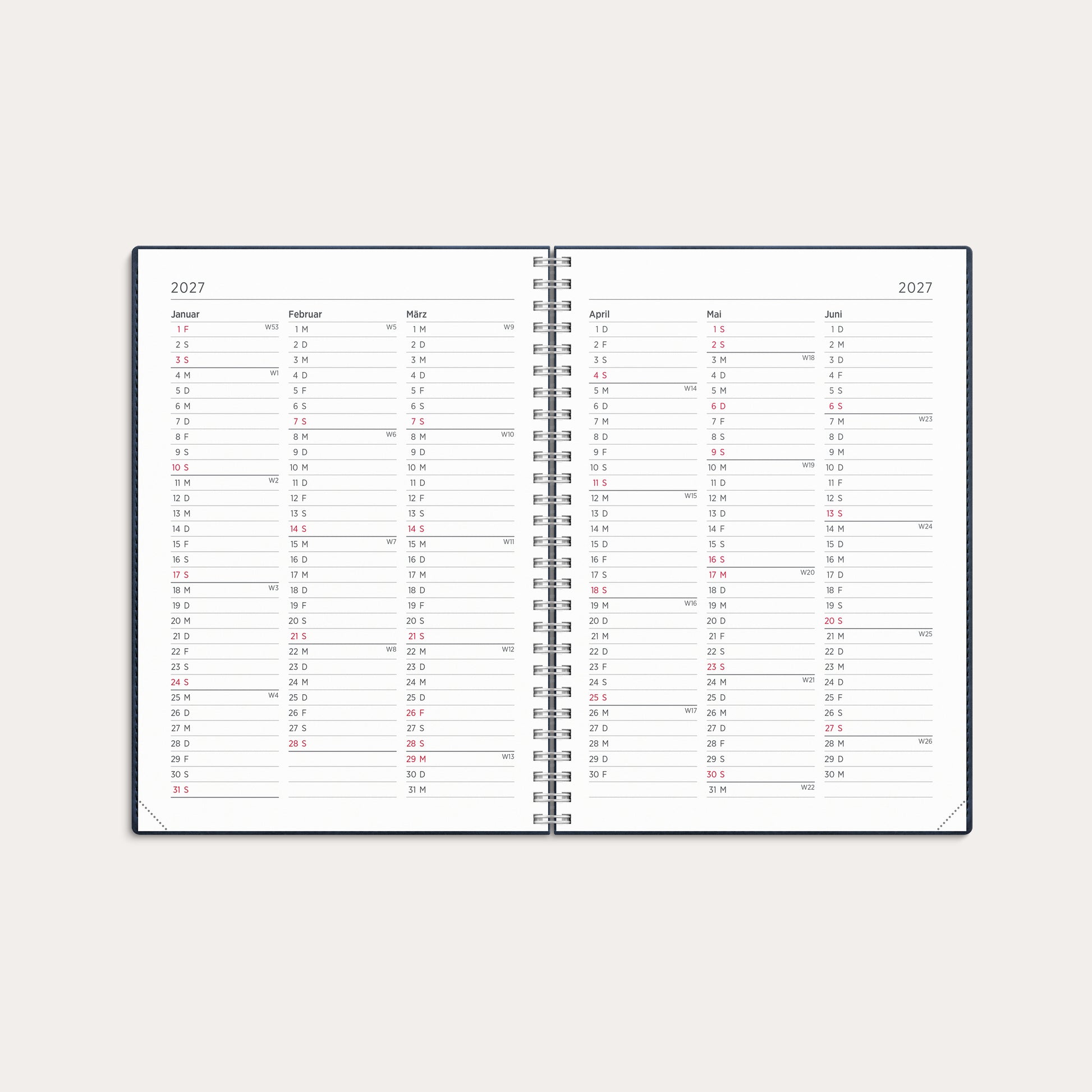 Senator A5 bietet ein klassisches Layout im horizontalen Format, das sich auf eine einfache Wochenplanung konzentriert. Mit einer klar strukturierten Wochenplanung, Jahresübersicht und Monatsplanung ist der Senator A5 das perfekte Werkzeug für dich, wenn du viel auf dem Programm hast oder als analoges Ergänzungsmittel zu deinen digitalen Lösungen. Zusätzlich enthält er Checklisten, kleinere Notizmöglichkeiten und eine praktische Aufbewahrungstasche.