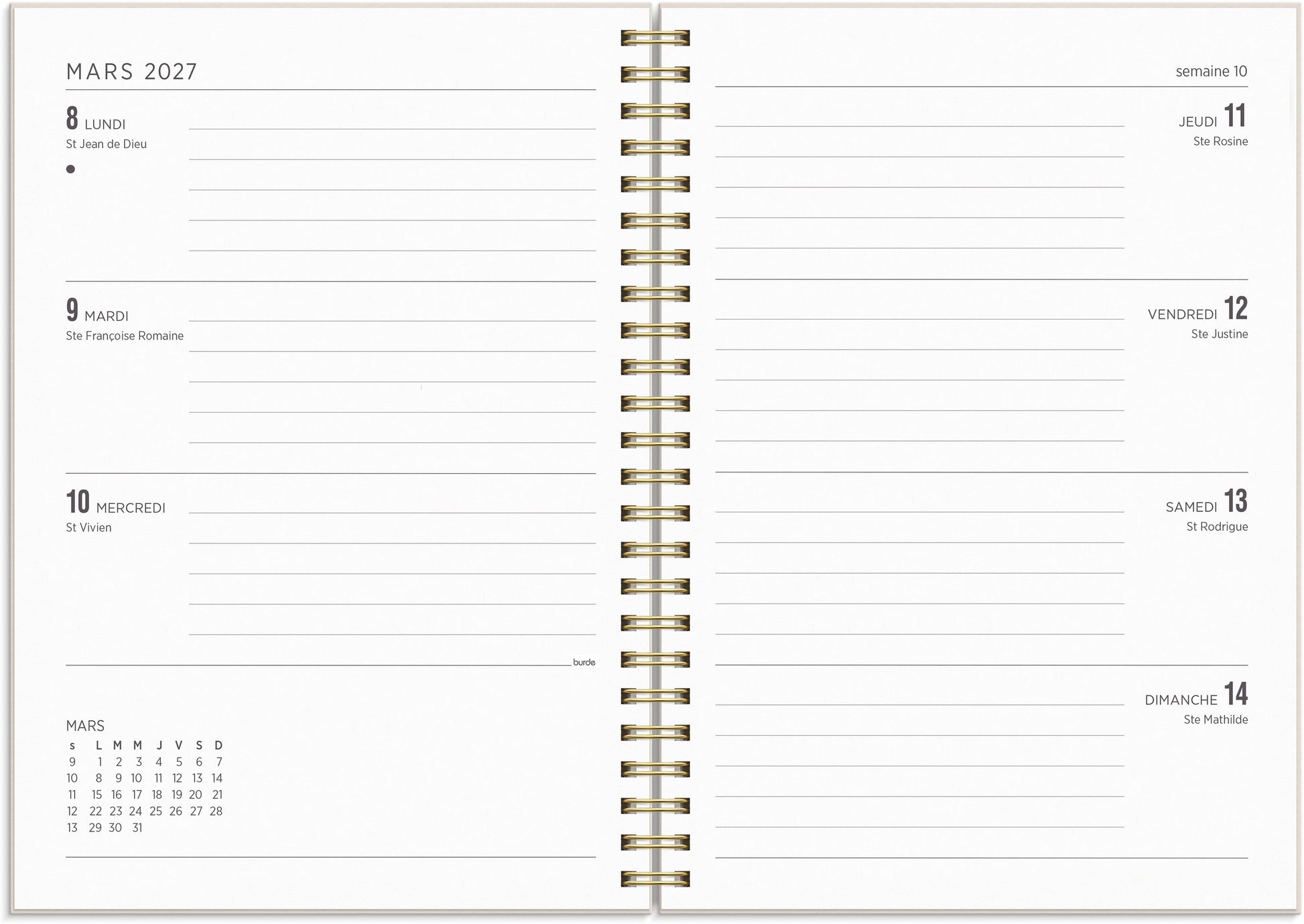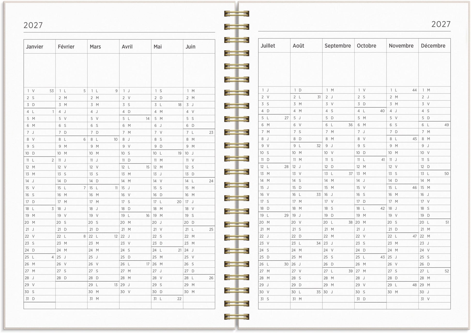 | Répartition de la mise en page | Semaine/double page |