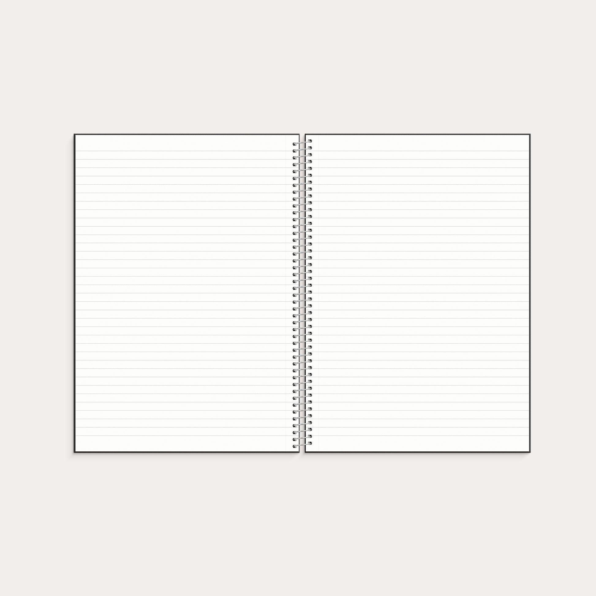 Cahier populaire avec couverture en carton mat et détails en feuille d'argent. La reliure spirale permet de l'ouvrir facilement et de le poser à plat.