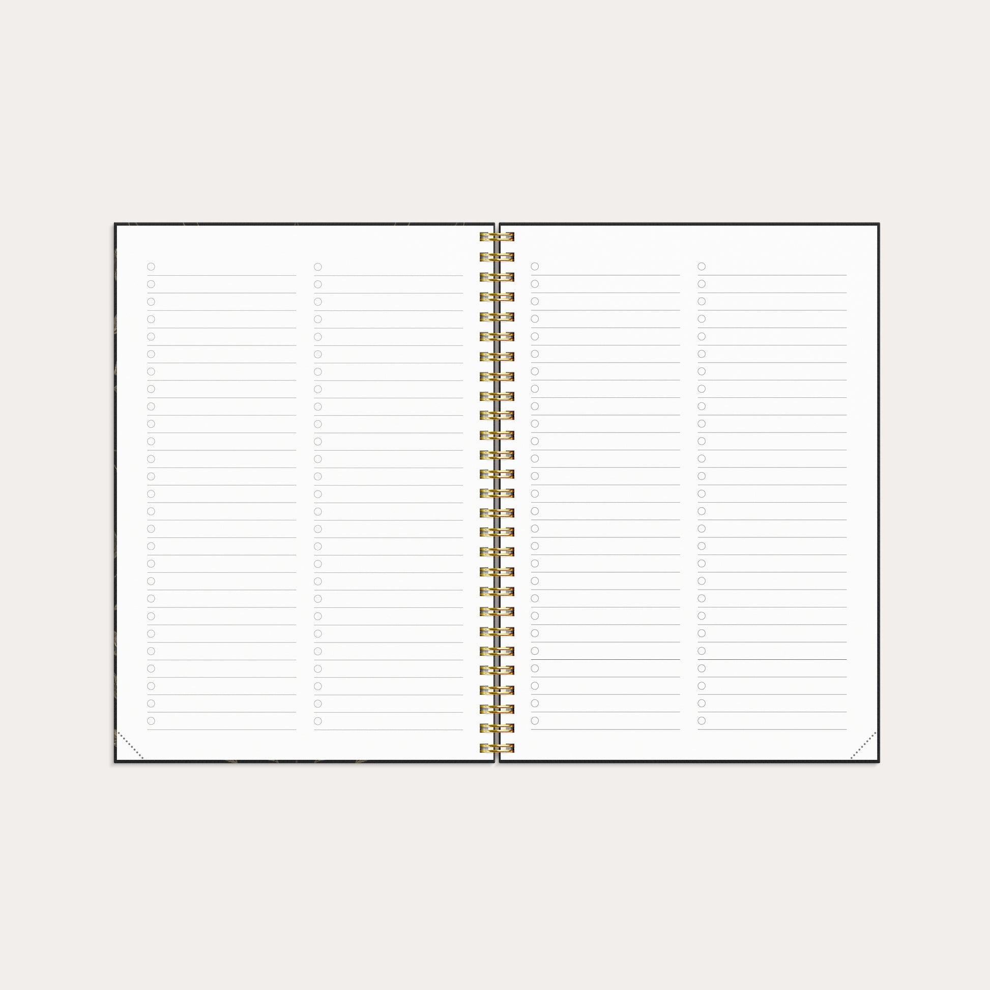 Un calendrier élégant avec une couverture en carton structuré. Avec une mise en page horizontale, il offre une planification hebdomadaire simple et claire, avec autant d’espace pour les jours de semaine que pour le week-end. La disposition intérieure est idéale pour ceux qui ont un emploi du temps chargé et souhaitent avoir un compagnon de tous les jours à la fois pratique et esthétique.