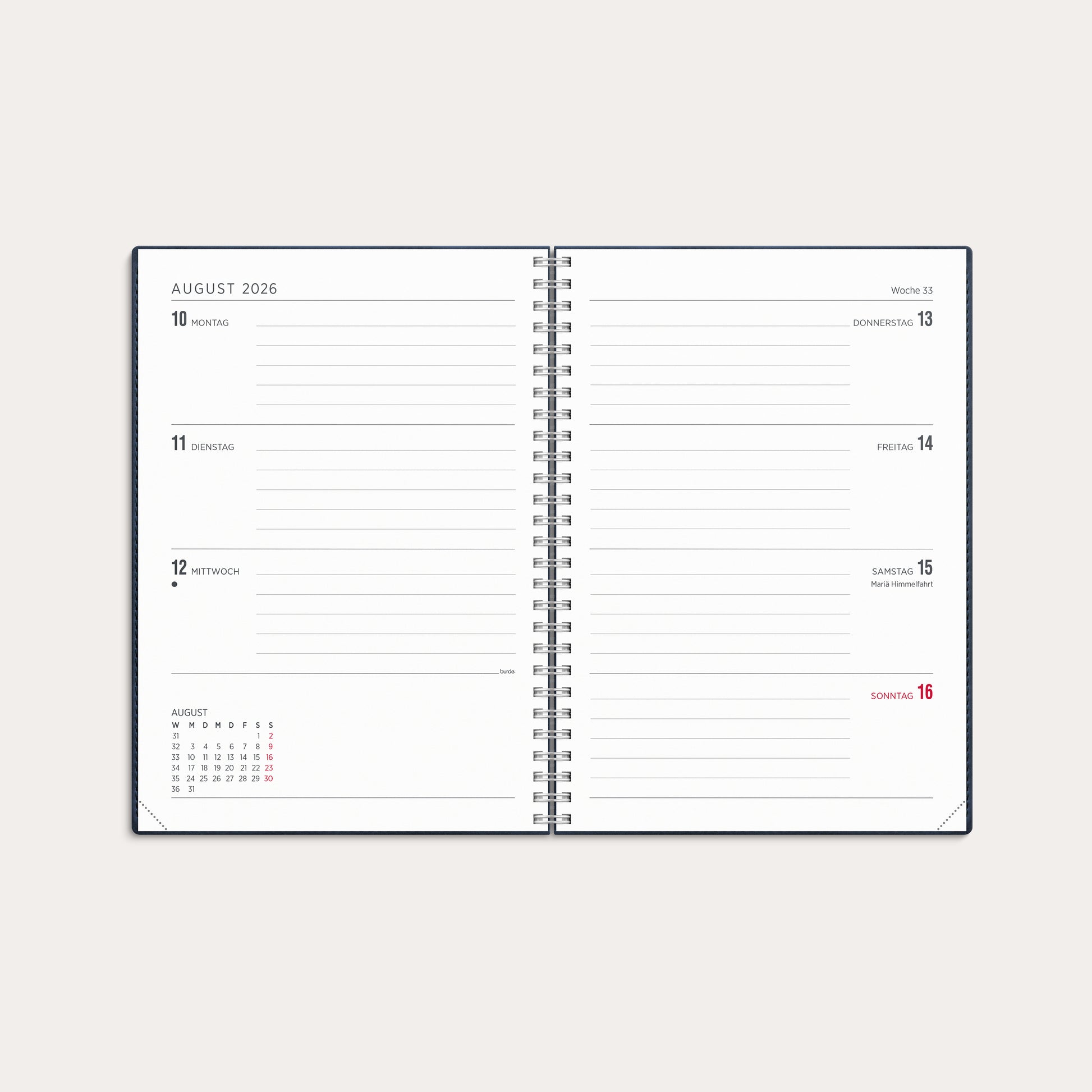 Senator A5 bietet ein klassisches Layout im horizontalen Format, das sich auf eine einfache Wochenplanung konzentriert. Mit einer klar strukturierten Wochenplanung, Jahresübersicht und Monatsplanung ist der Senator A5 das perfekte Werkzeug für dich, wenn du viel auf dem Programm hast oder als analoges Ergänzungsmittel zu deinen digitalen Lösungen. Zusätzlich enthält er Checklisten, kleinere Notizmöglichkeiten und eine praktische Aufbewahrungstasche.