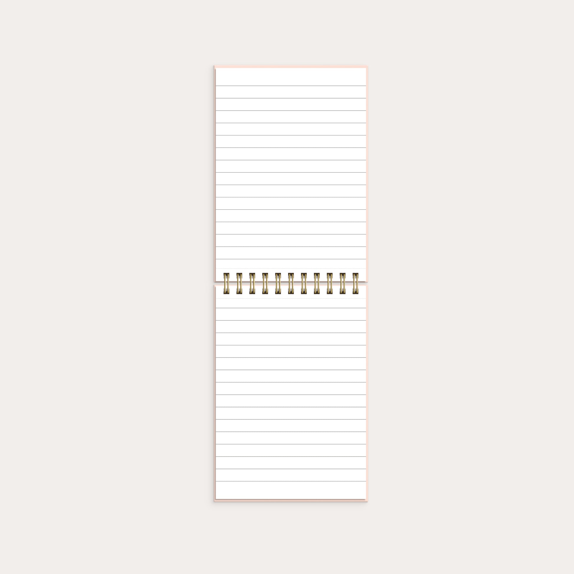 Taccuino / Quaderno con copertina in cartoncino opaco rosa chiaro e motivo di stelle in foglia d’oro. Progettato in Svezia con attenzione alla funzionalità e alla forma. Perfetto per appunti veloci in movimento — che tu sia in viaggio, intervistato o in riunione. La rilegatura a spirale in alto rende facile sfogliare e scrivere in piedi. Contiene 100 pagine rigate.