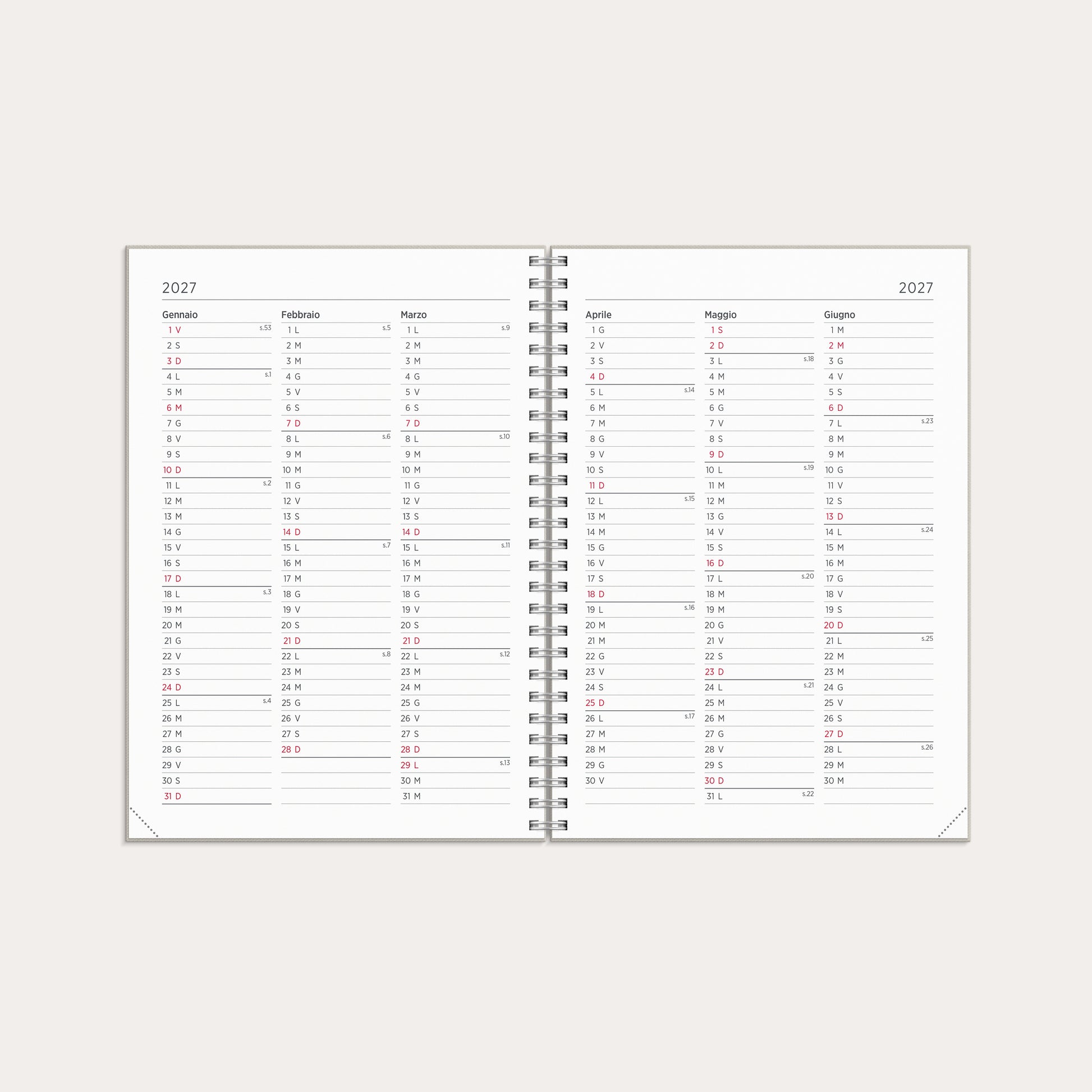 L’impaginazione interna è perfetta per chi ha un’agenda fitta di impegni, indipendentemente dal giorno della settimana.