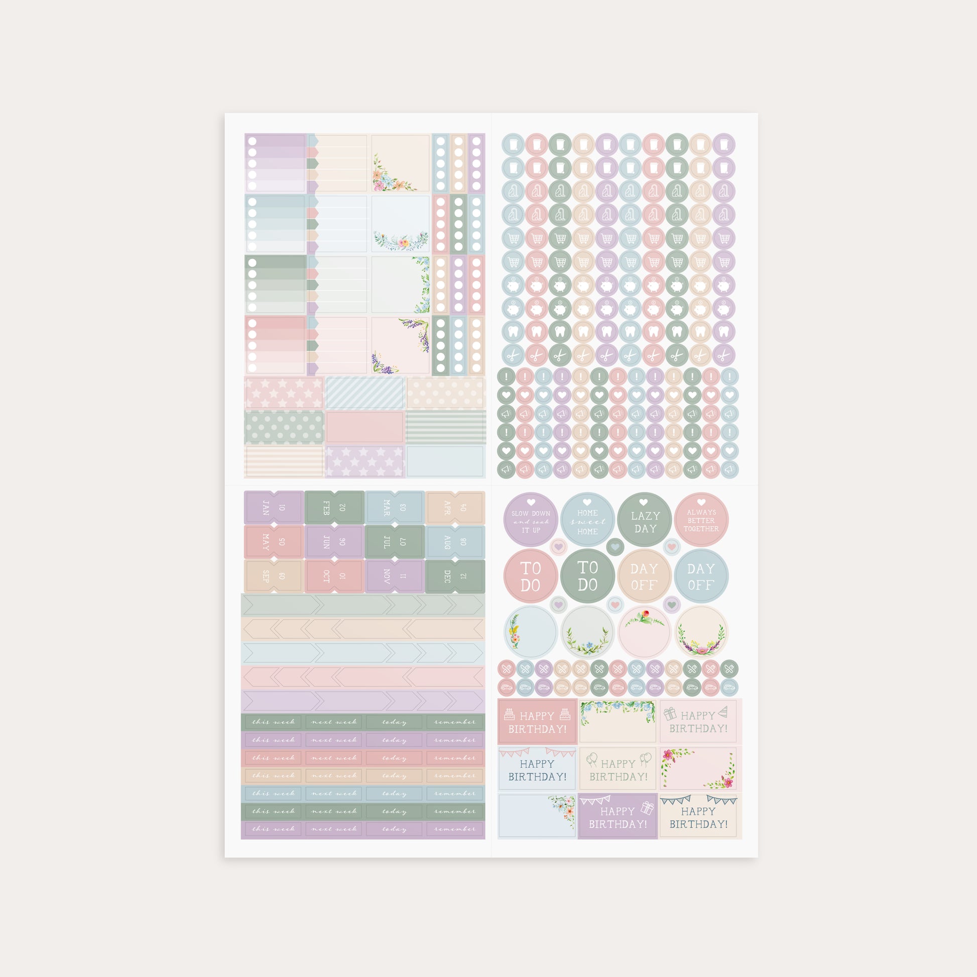 Il foglio di adesivi Family Life contiene tutto il necessario per la vita quotidiana in famiglia! Grazie all’ampia gamma di adesivi, da quelli per gli appuntamenti dal dentista ai compleanni, dagli elenchi pratici alle schede mensili, questi adesivi rappresentano un'ottima integrazione alla tua agenda.