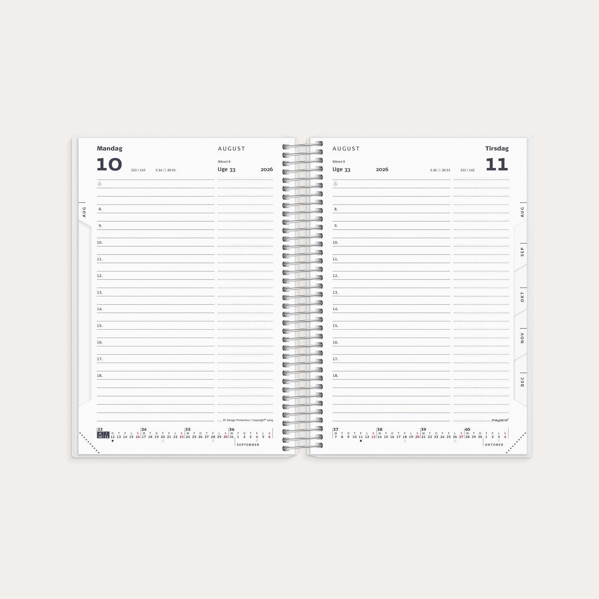 | Layout uppdelning | Dag/sida |