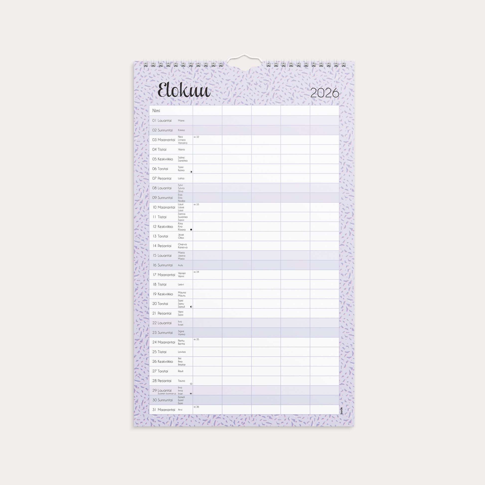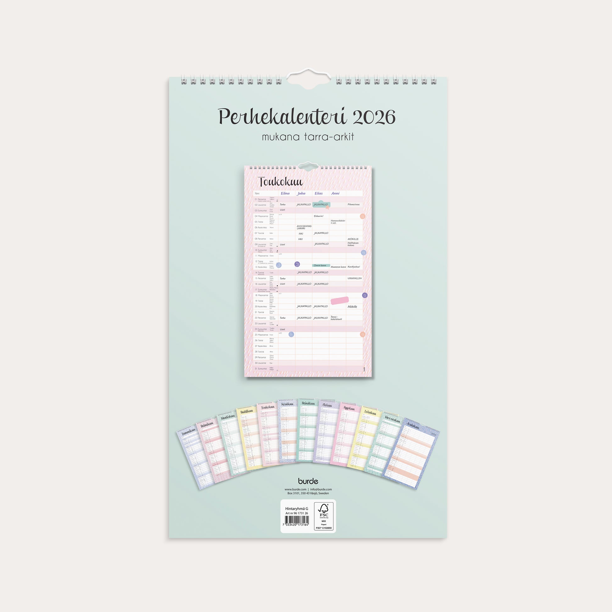 Familjekalender 2026 Pastell
