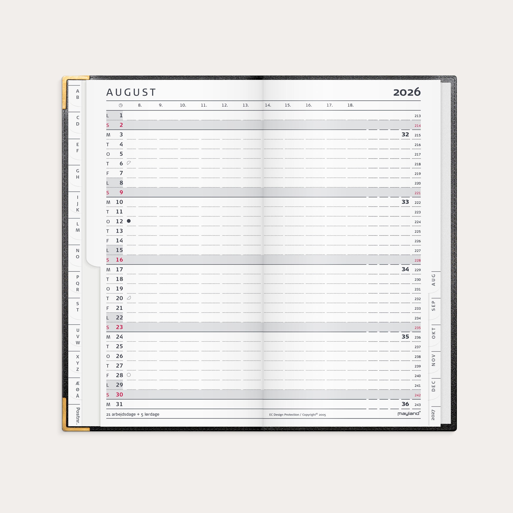 Index Planner månedskalender sort skind 2026