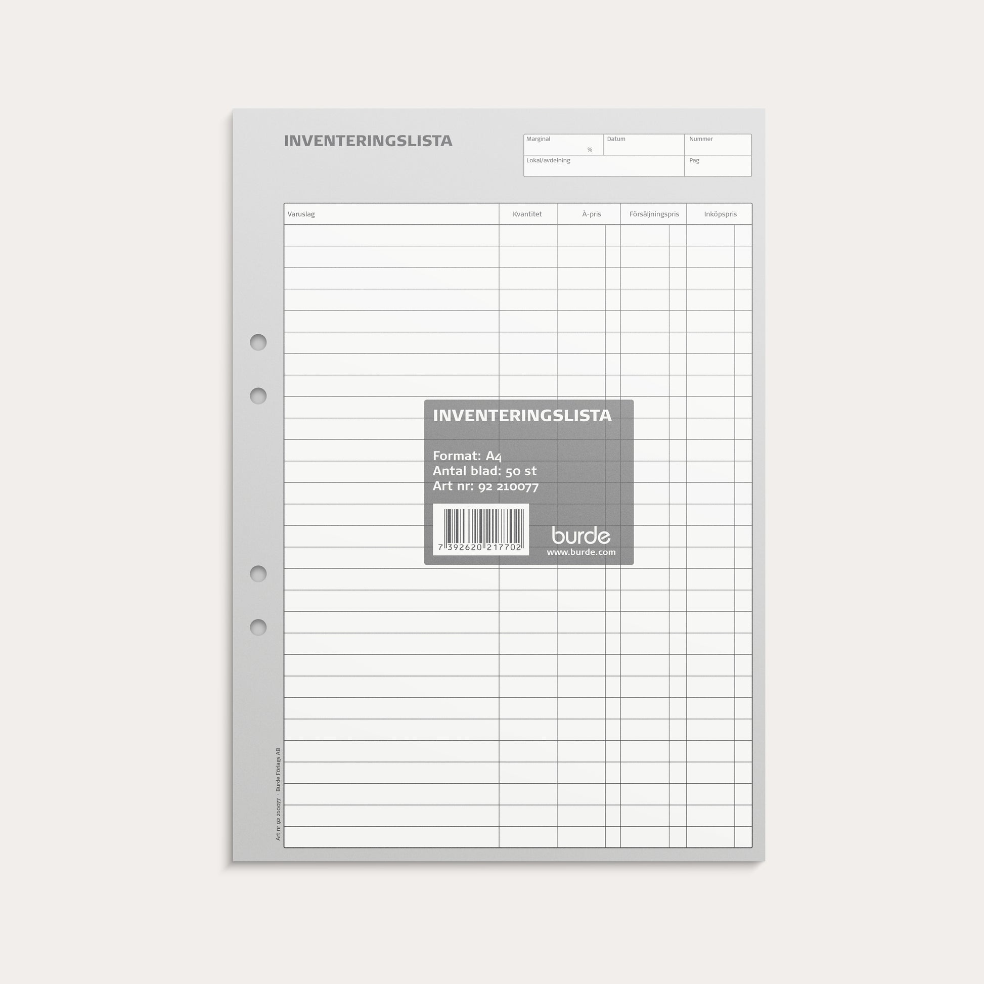 Inventeringslista A4 50 blad