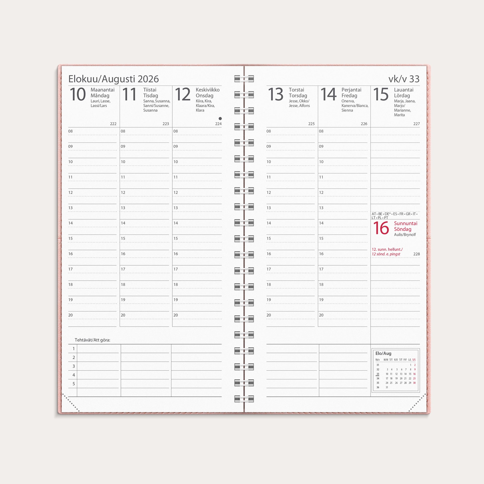 Kalender 2026 Interplano rosa konstläder (tvåspråkig)