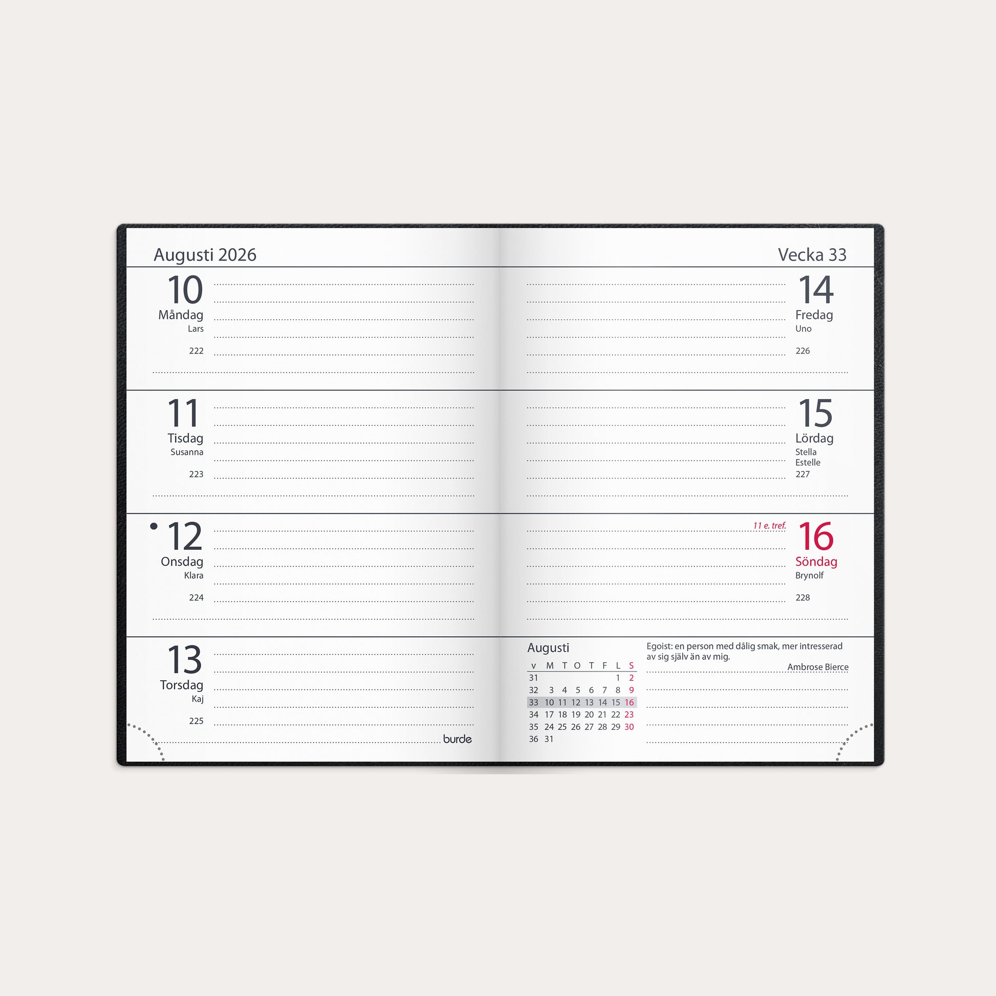 Kalender 2026 Lilla Fickdagboken svart konstläder