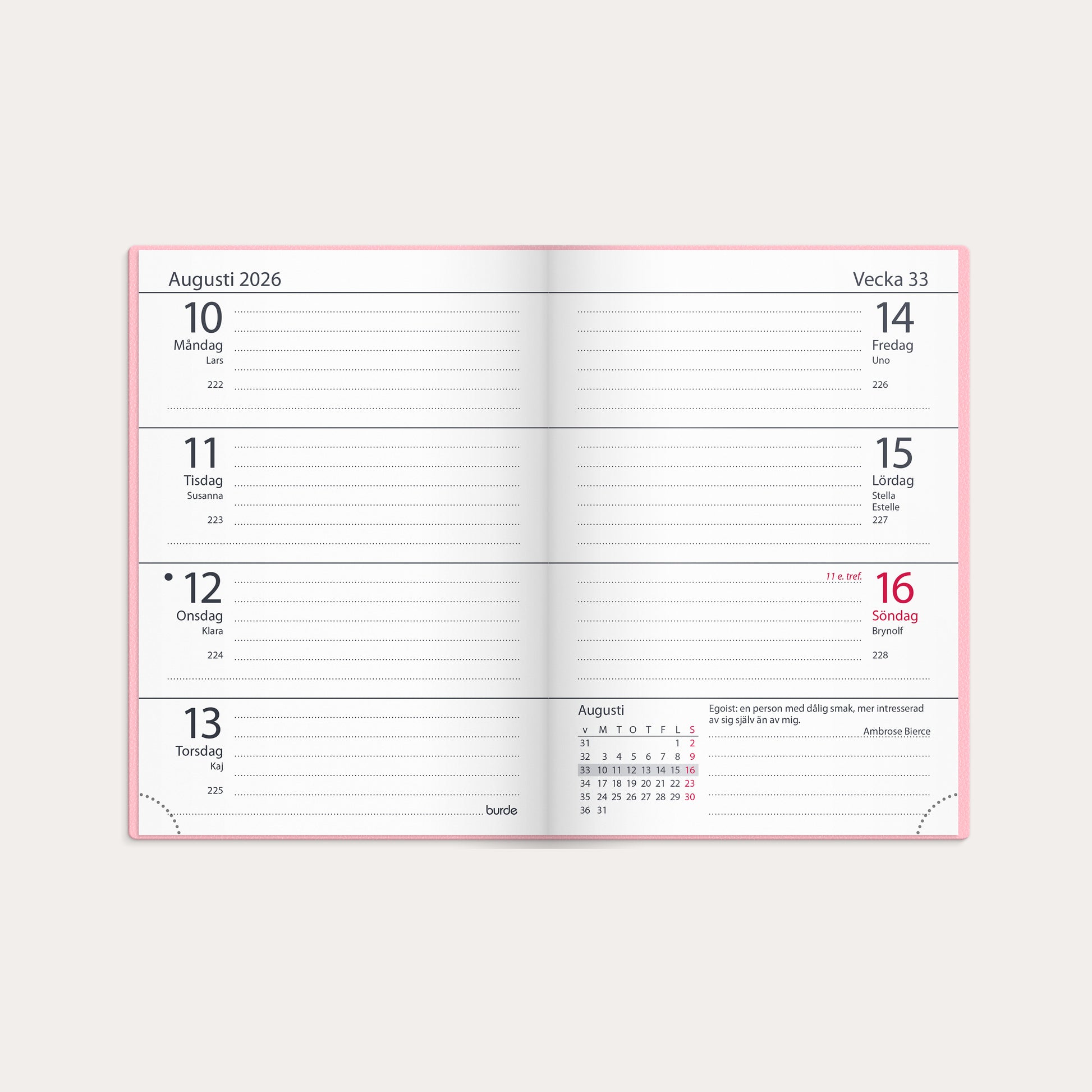 Kalender 2026 Lilla Fickdagboken Vega rosa