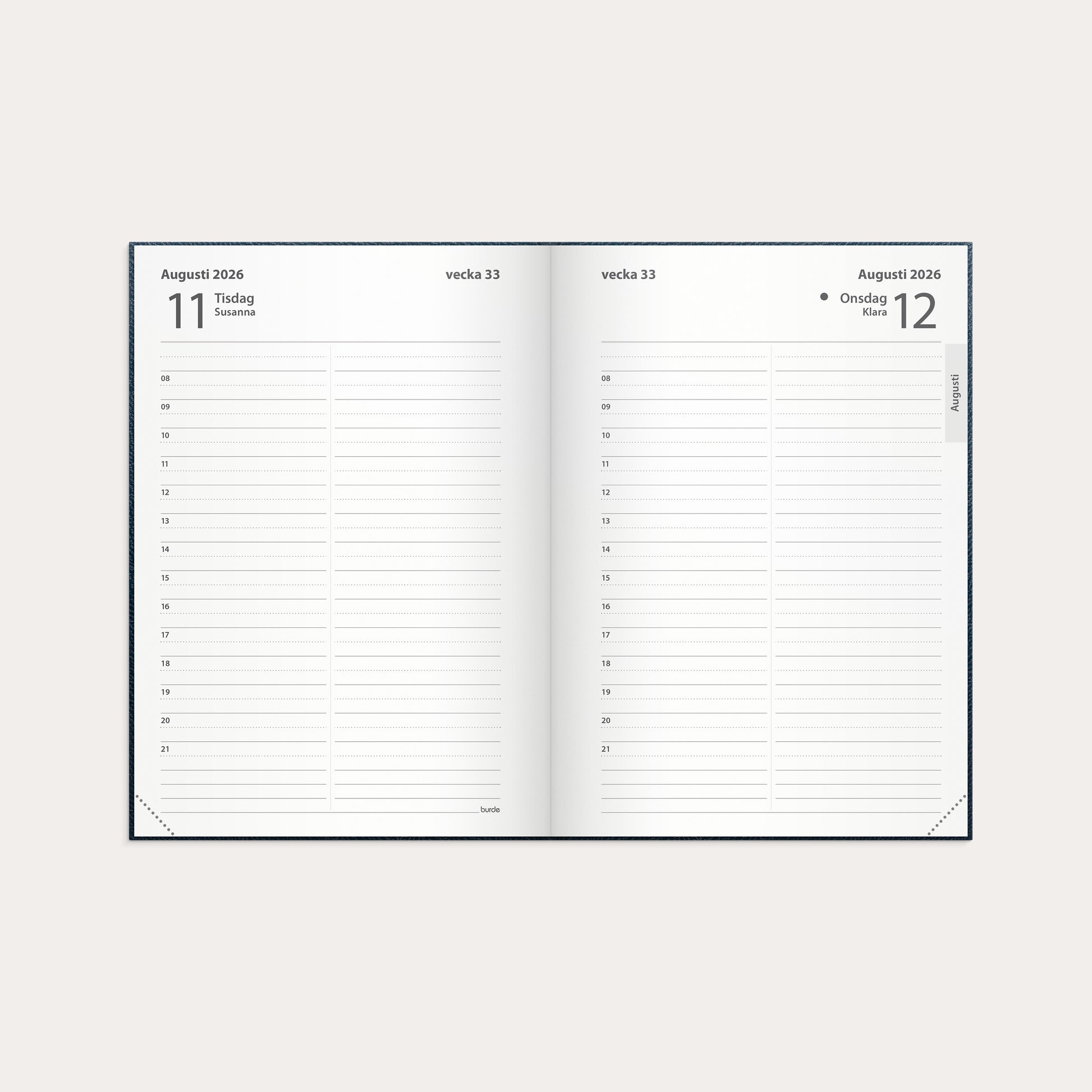| Layout uppdelning | Dag/sida |
