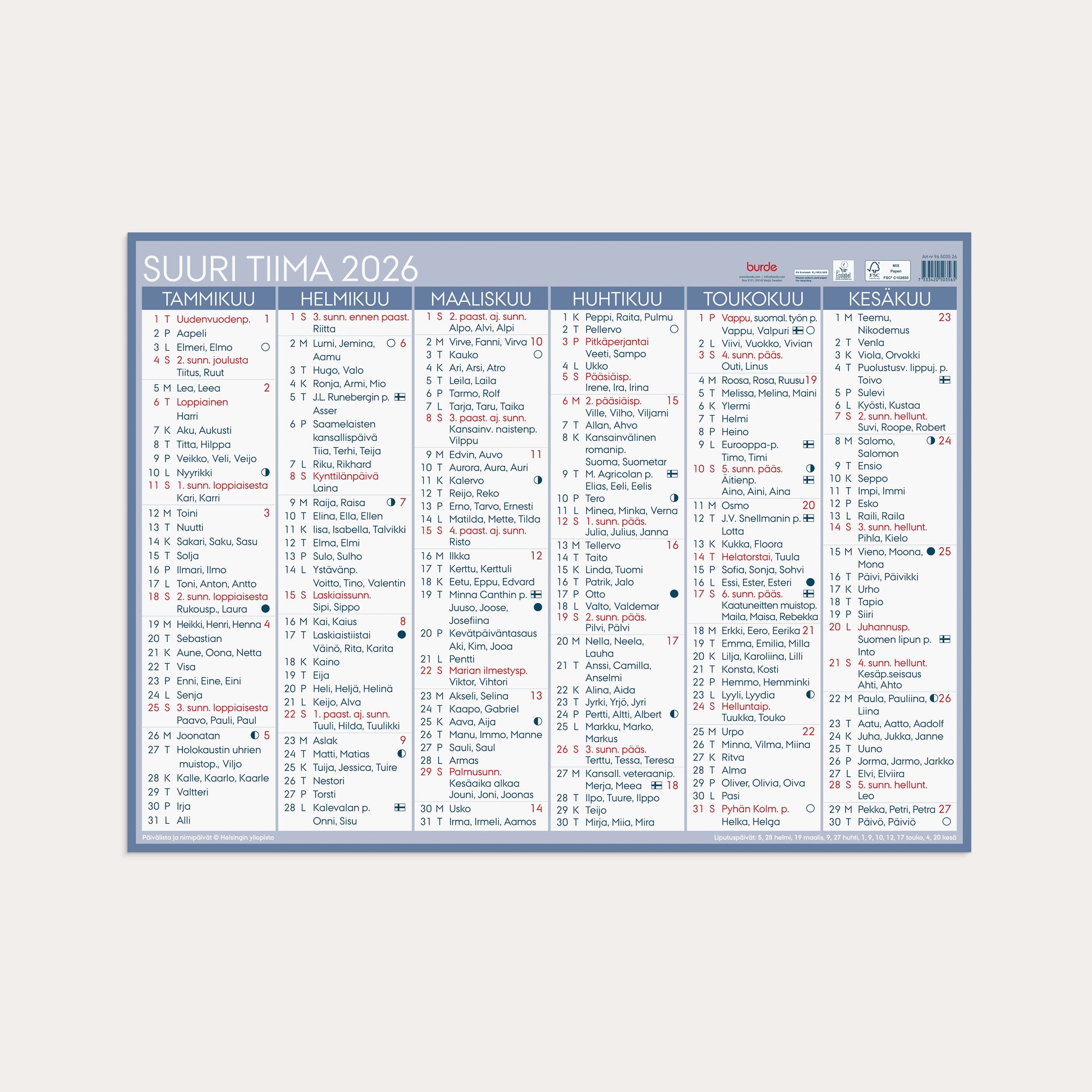 Kalender 2026 Stort väggblad Tiima