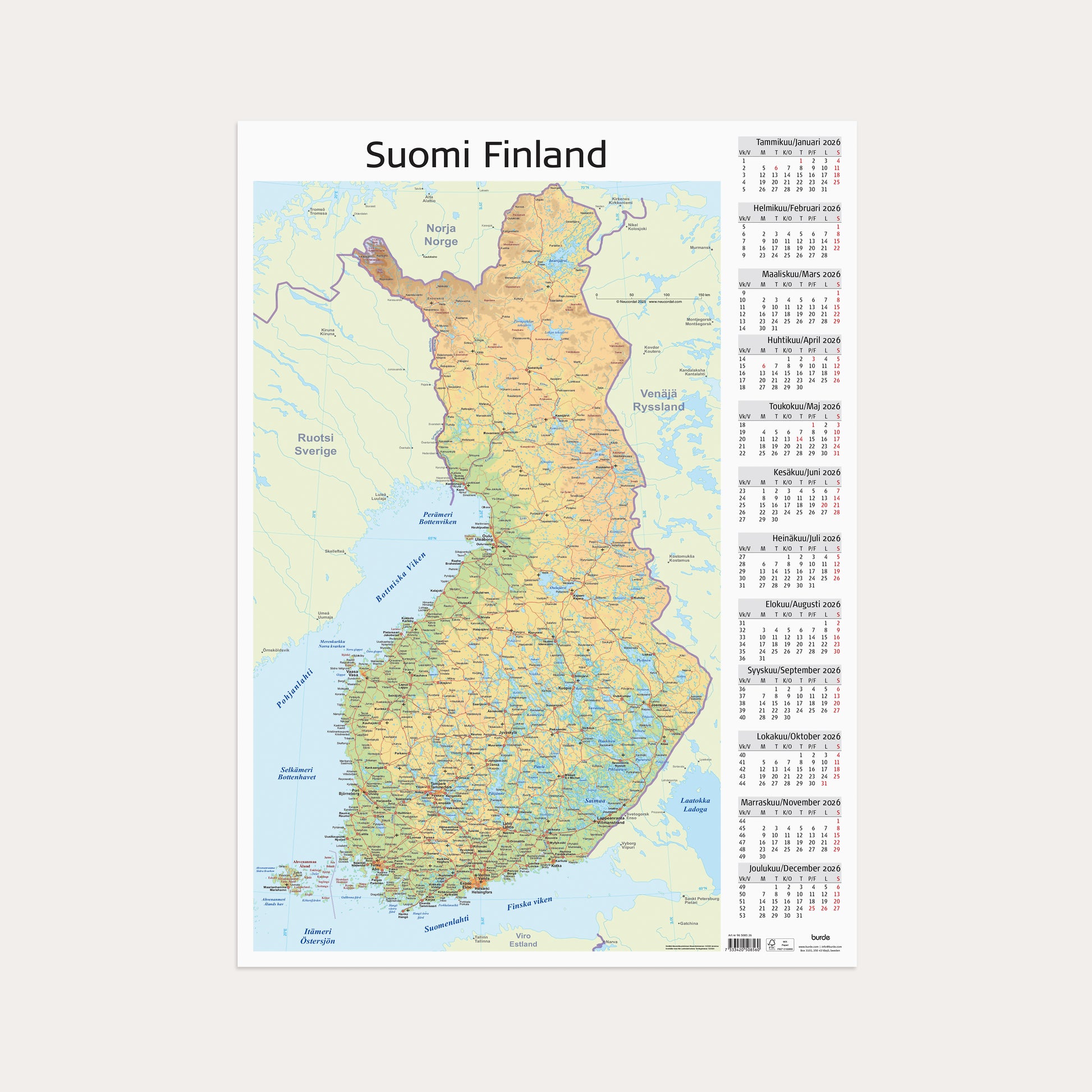 Kalender 2026 Väggblad Finland
