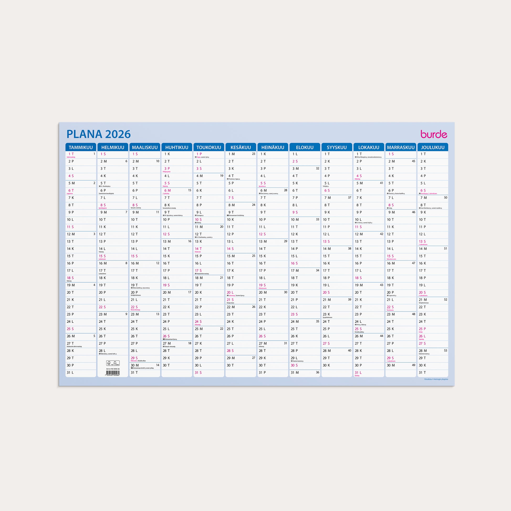 Kalender 2026 Väggblad Plana