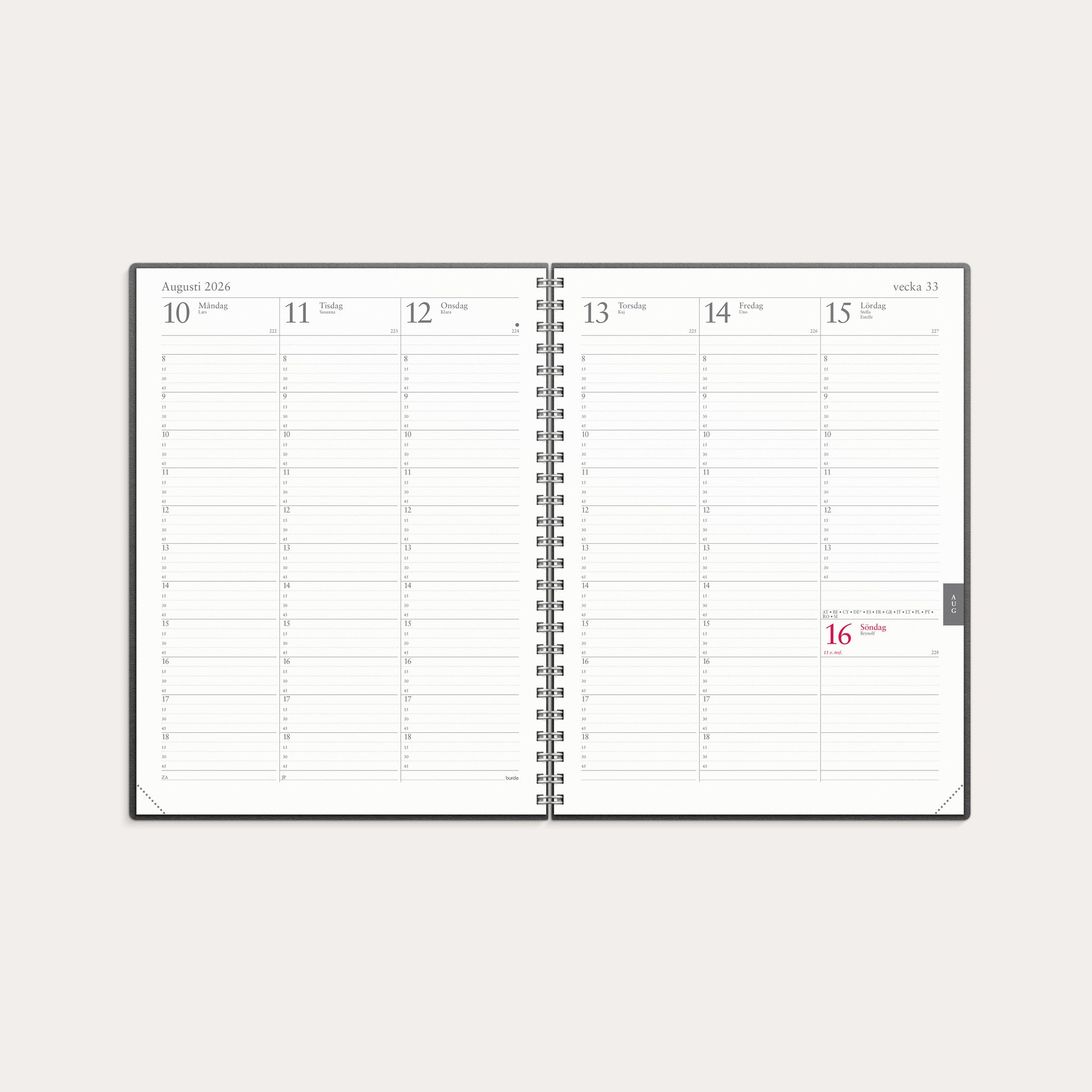 Kalender 2026 Veckojournal svart konstläder