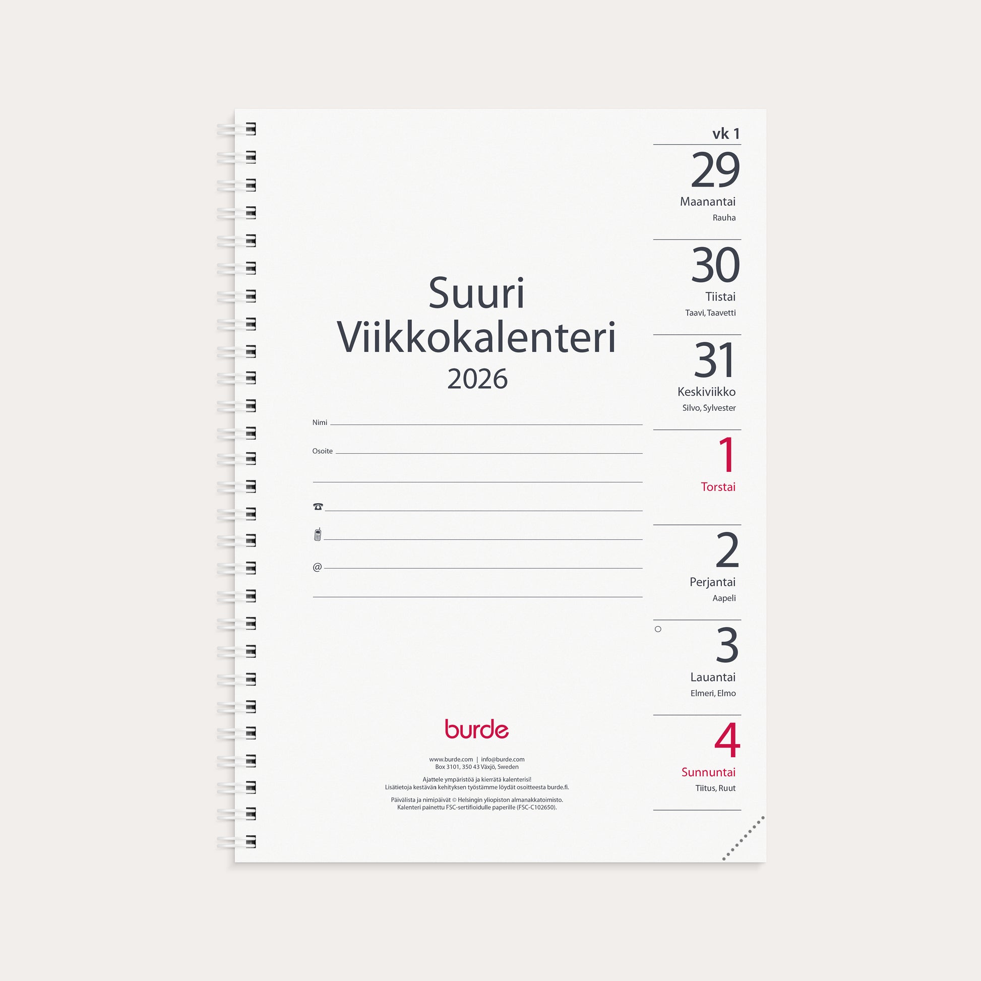 Kalender 2026 Stor Veckokalender refill