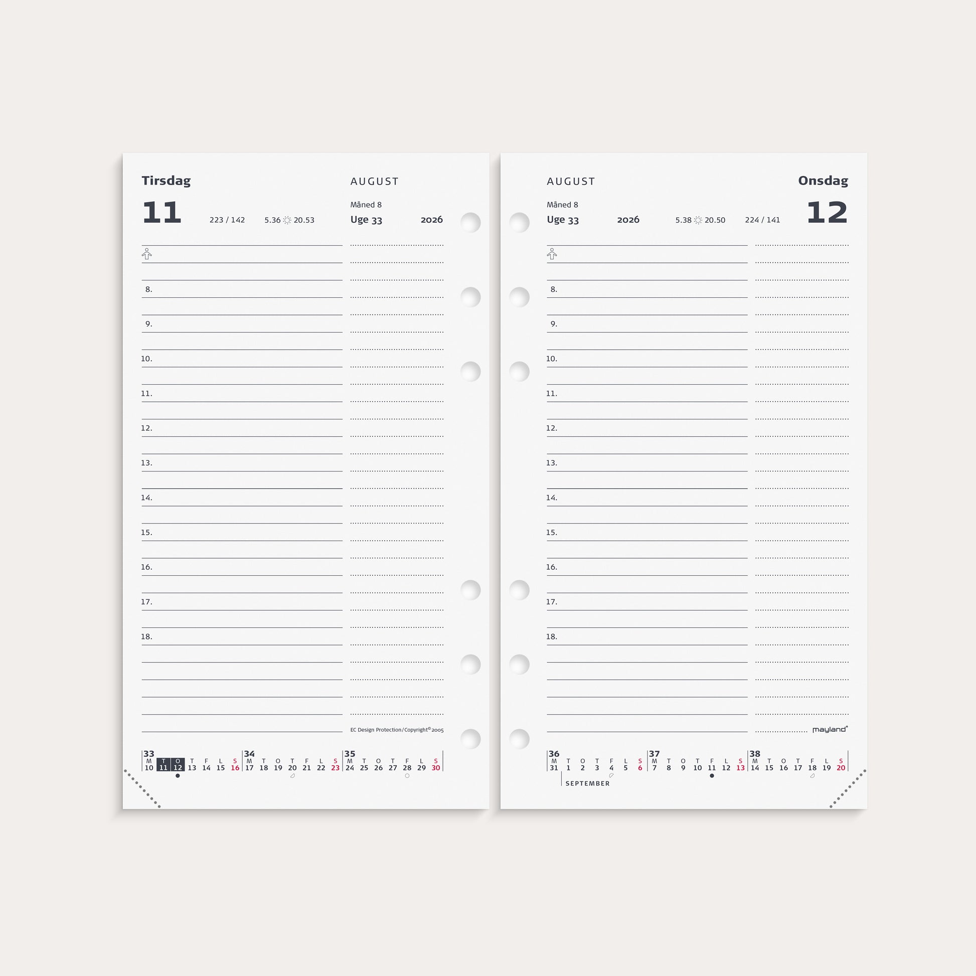 | Layout uppdelning | Dag/sida |