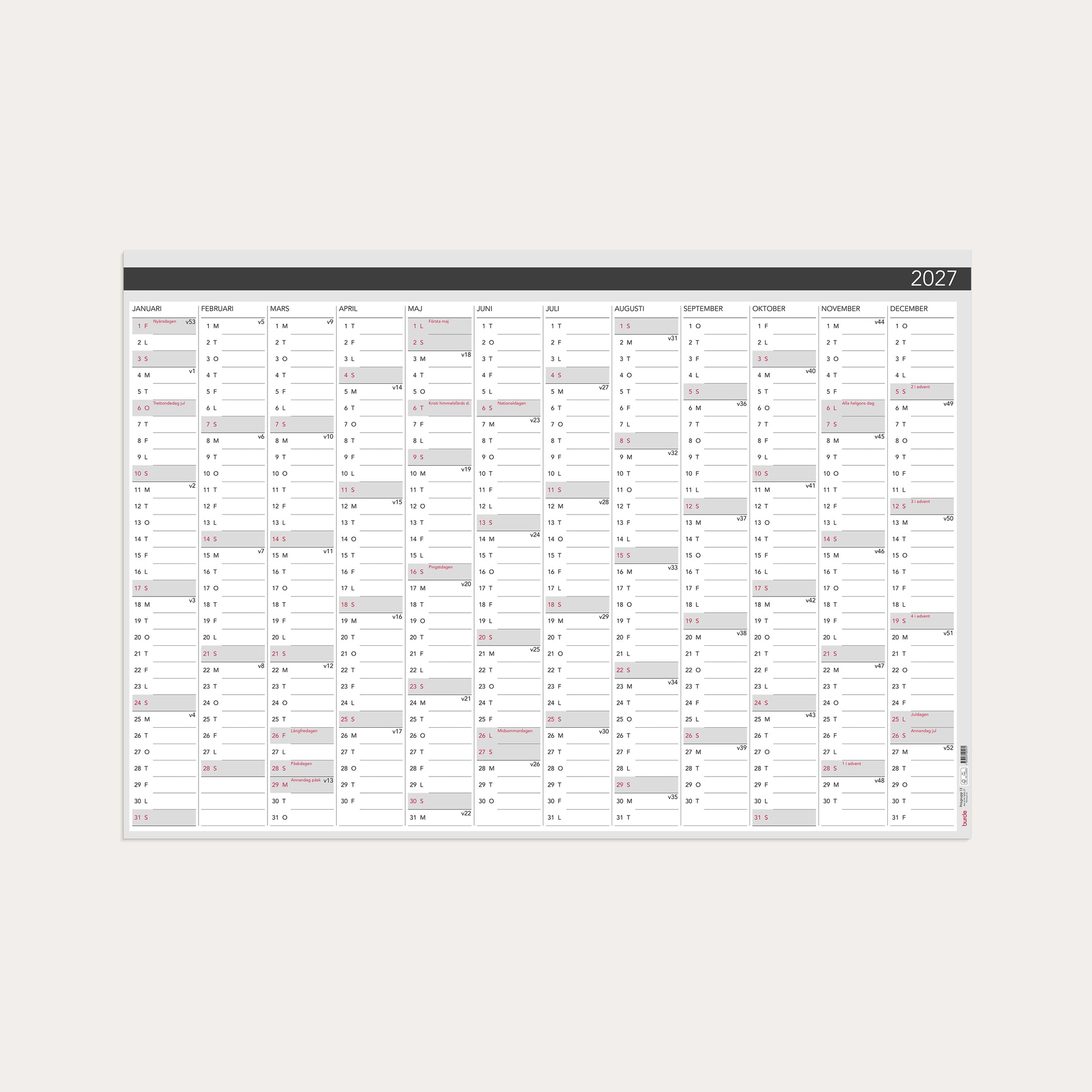 Väggkalender 2027 Väggblad Elegant 980x680mm
