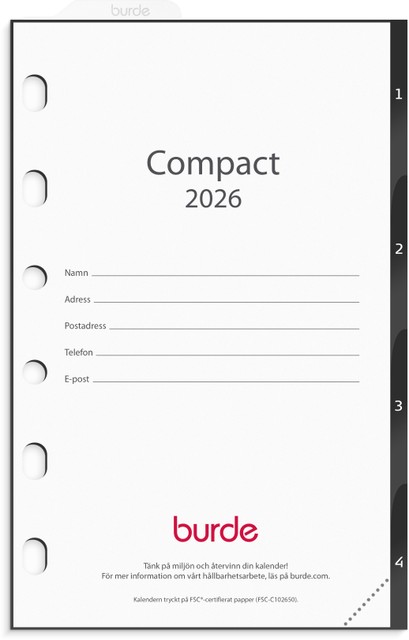 Grundsats till systemkalender Compact. Grundsatsen innehåller hålad kalenderdel (4201) och blankettdel.