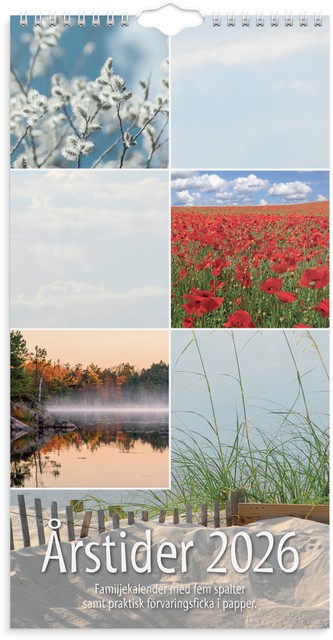 Klassisk familjekalender med 5 kolumner och fina årstidsbilder. Väggkalendern har en praktisk ficka för lösa papper.