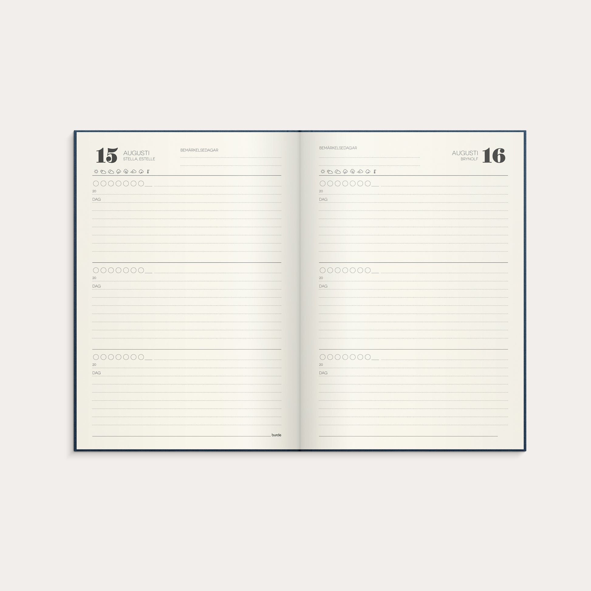 Årsneutral dagbok med crèmefärgat papper som sträcker sig över tre år. Syrafritt och åldersbeständigt papper, perfekt för att kunna spara dagboken över tid. Följ vad som hände samma dag olika år. Dagboken har också plats för vädernoteringar.
