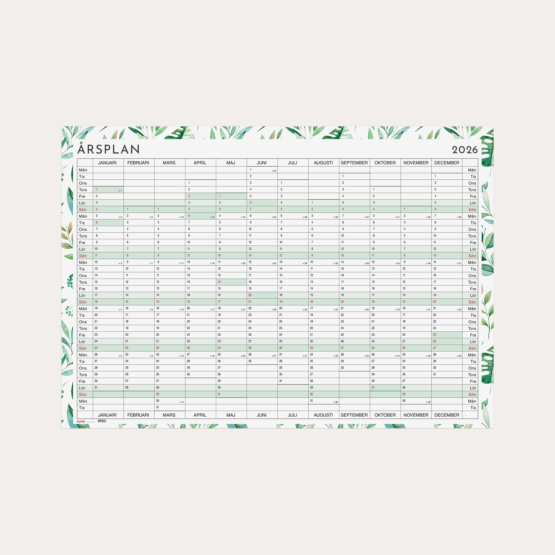 Kalender 2026 Årsplanering whiteboard