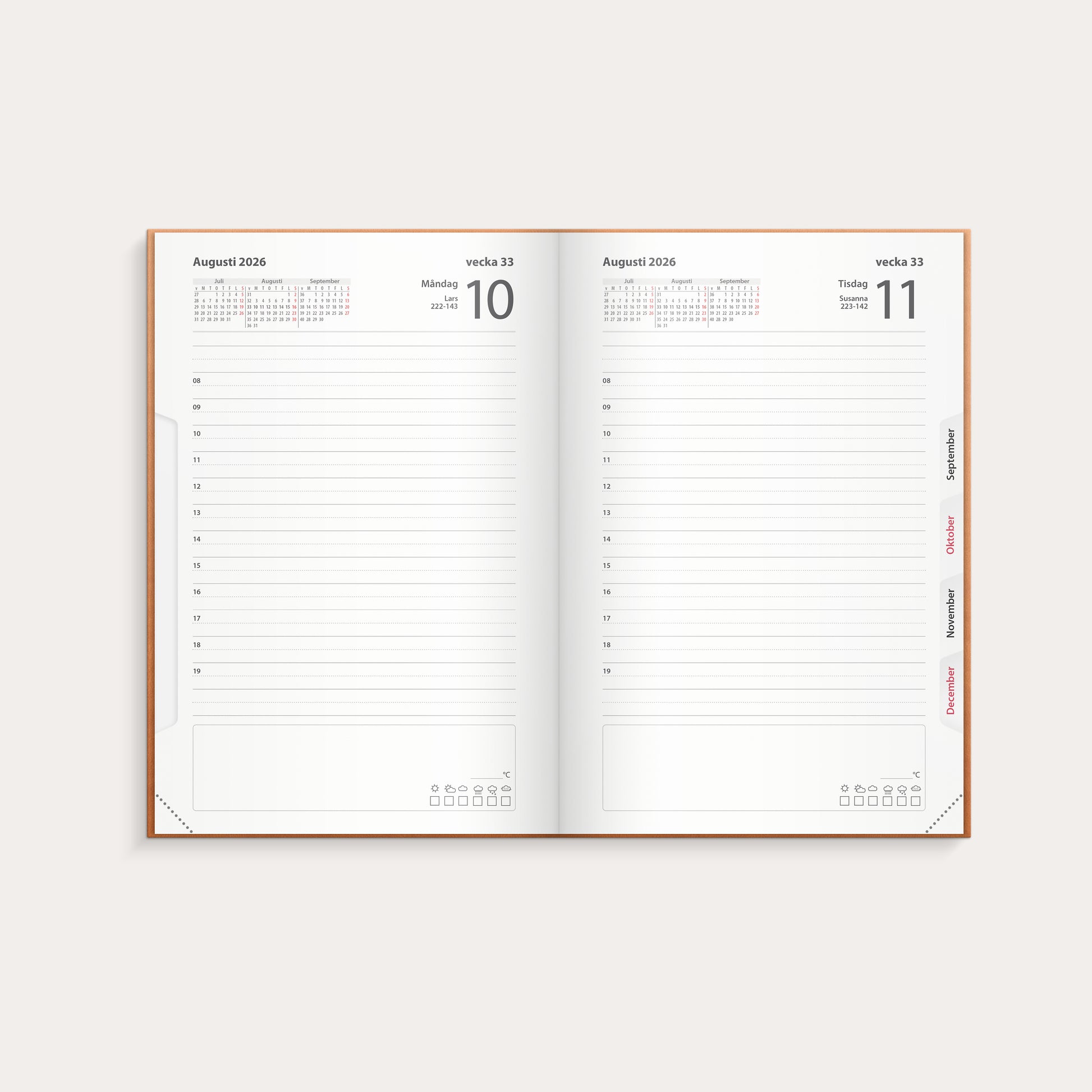 Kalender 2026 Dagbok cognac konstläder
