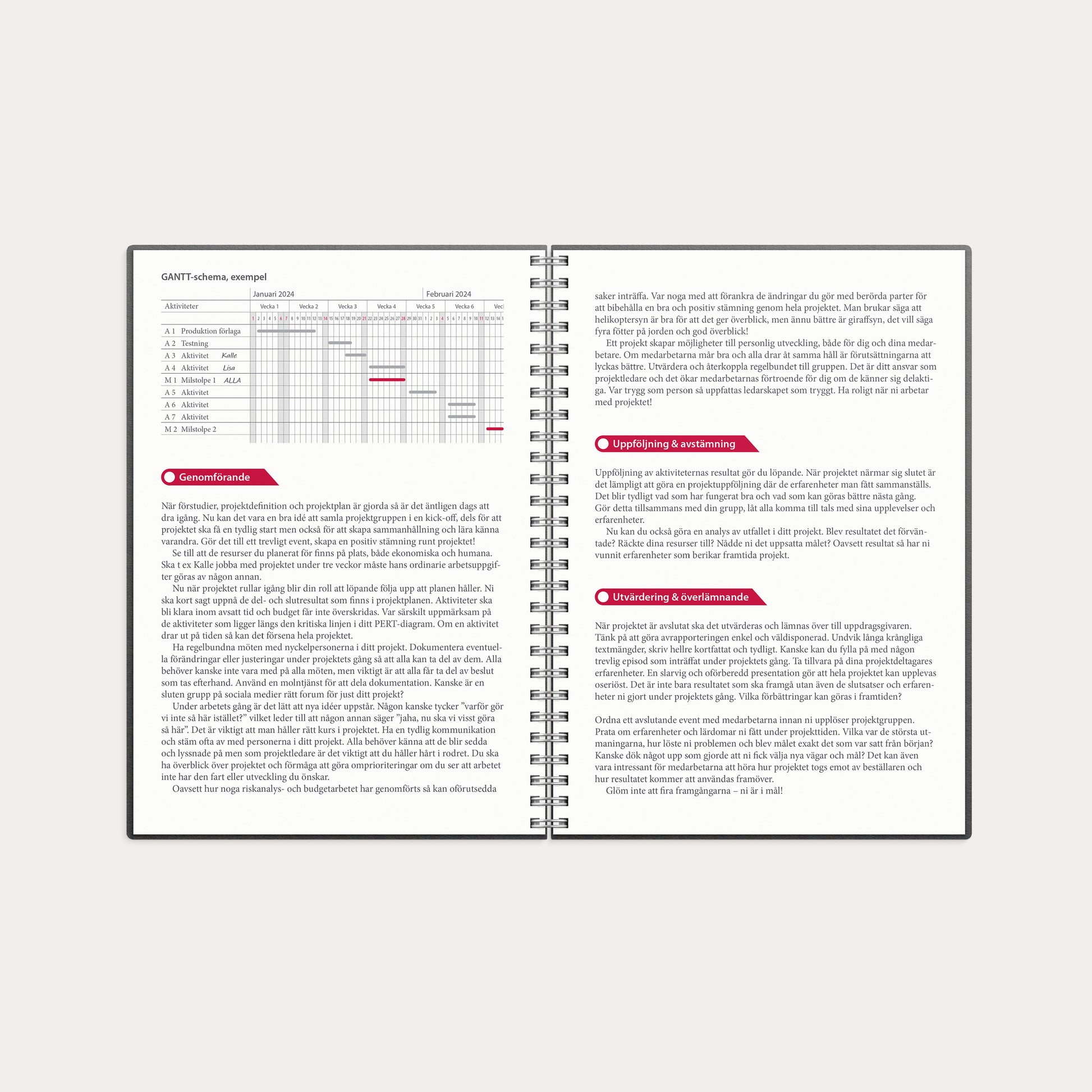 Alla projektledares hjälpreda. I denna kalender får du hjälp med verktyg och uppföljning för att ta en idé från start till mål. Här finns en översiktlig beskrivning av projektets faser, tips till dig som projektledare och uppföljning av projektledning och resultat.